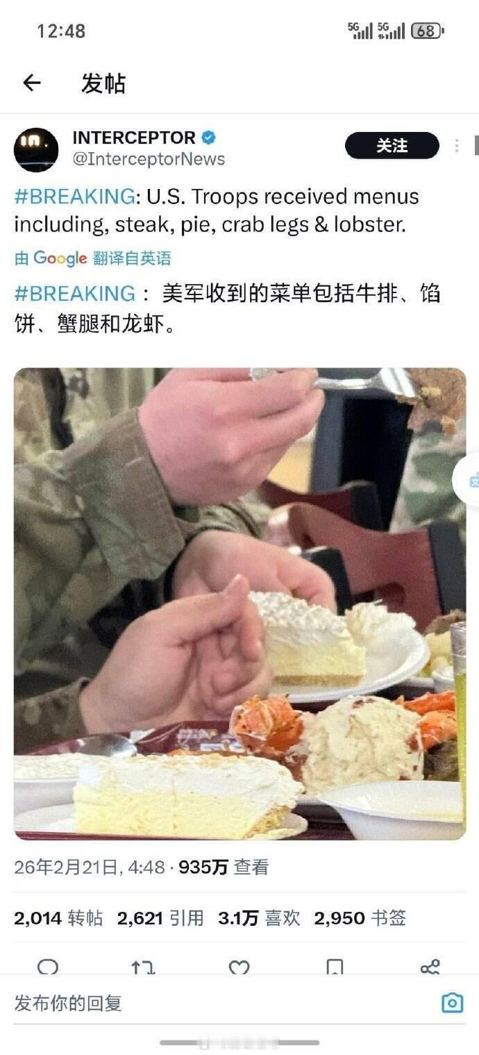 美伊冲突美军一线部队收到加餐了……可能要开始了吃顿好的。。。。美军集结近23年