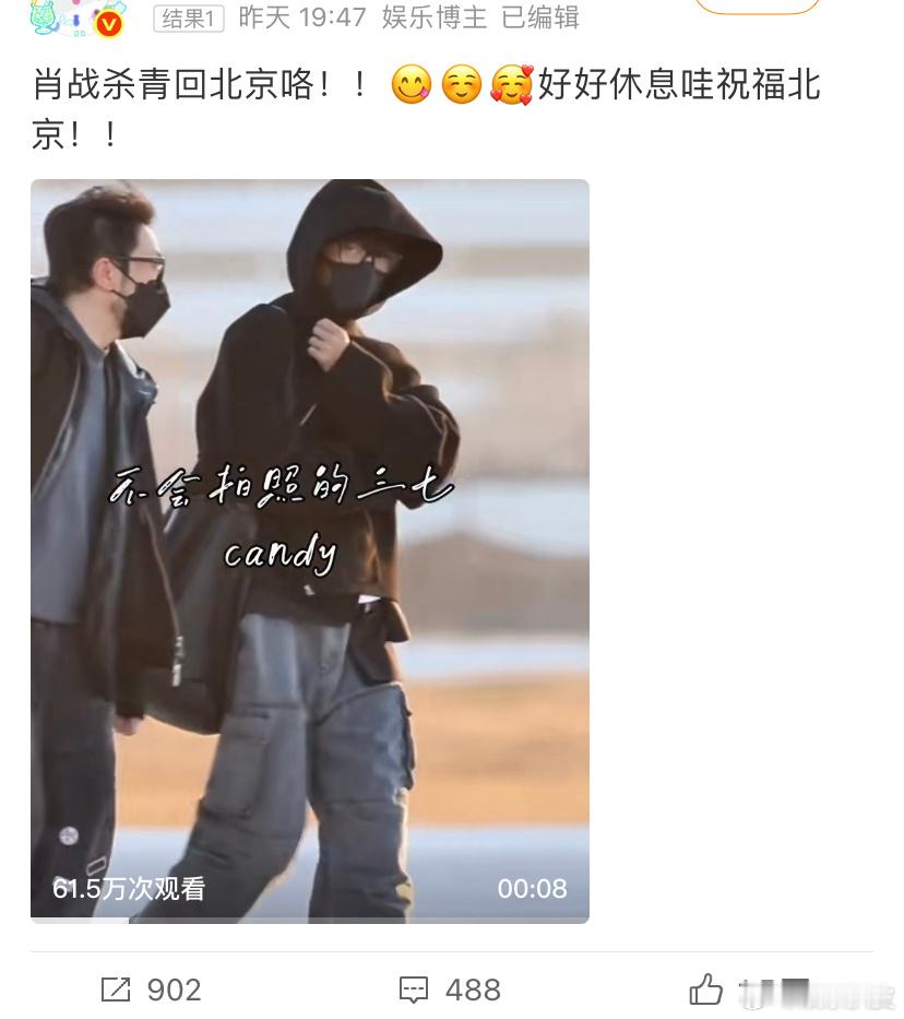 肖战杀青回北京祝肖战《小城良方》杀青快乐,希望早日与亮神见面,好好休息,期待接下来的时装周之旅 春节刷到宝了马年大吉