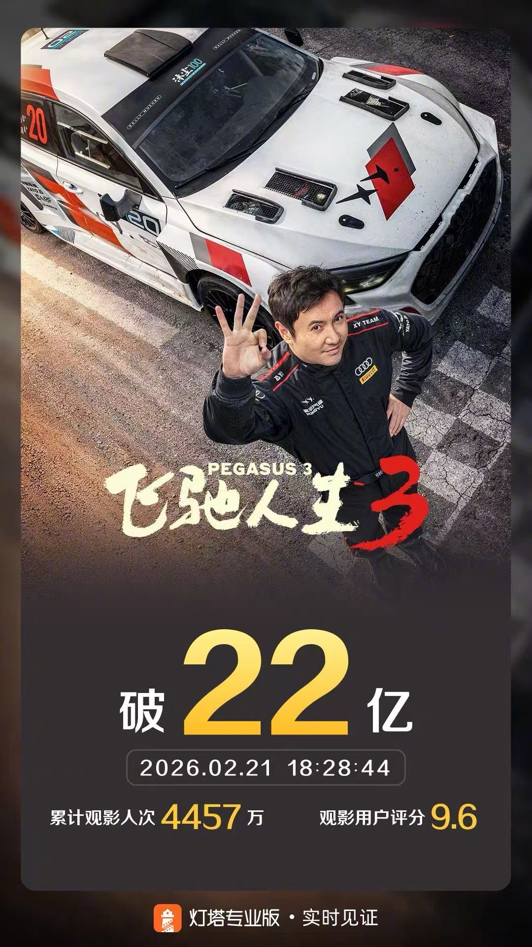 飞驰人生3票房破22亿据灯塔专业版实时数据,截至2月21日18时28分,影片《