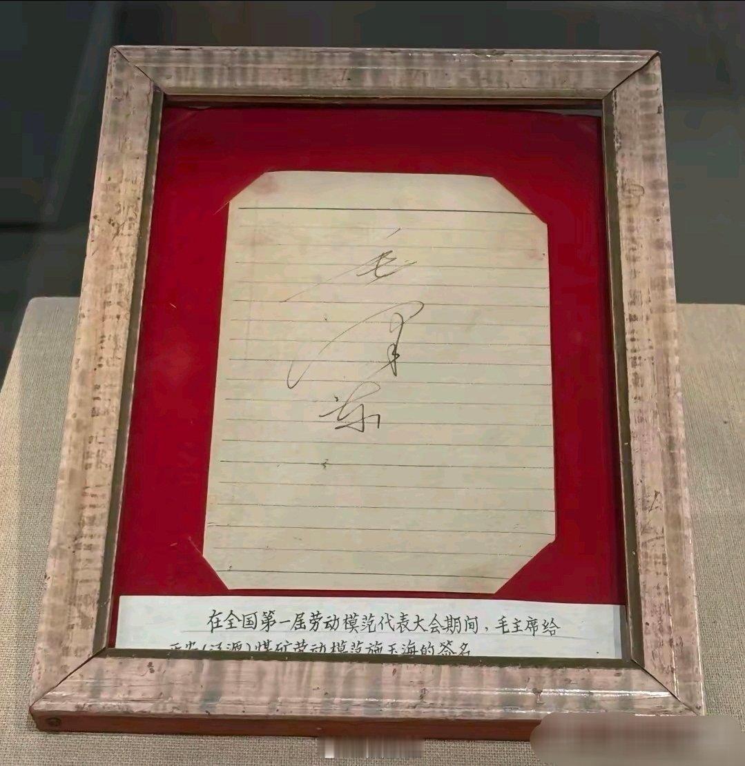 毛主席的亲笔签名,笔走龙蛇,气势磅礴!这是第一届全国劳动模范大会期间,毛主席给西安辽源煤矿劳动模范施玉海的签名!