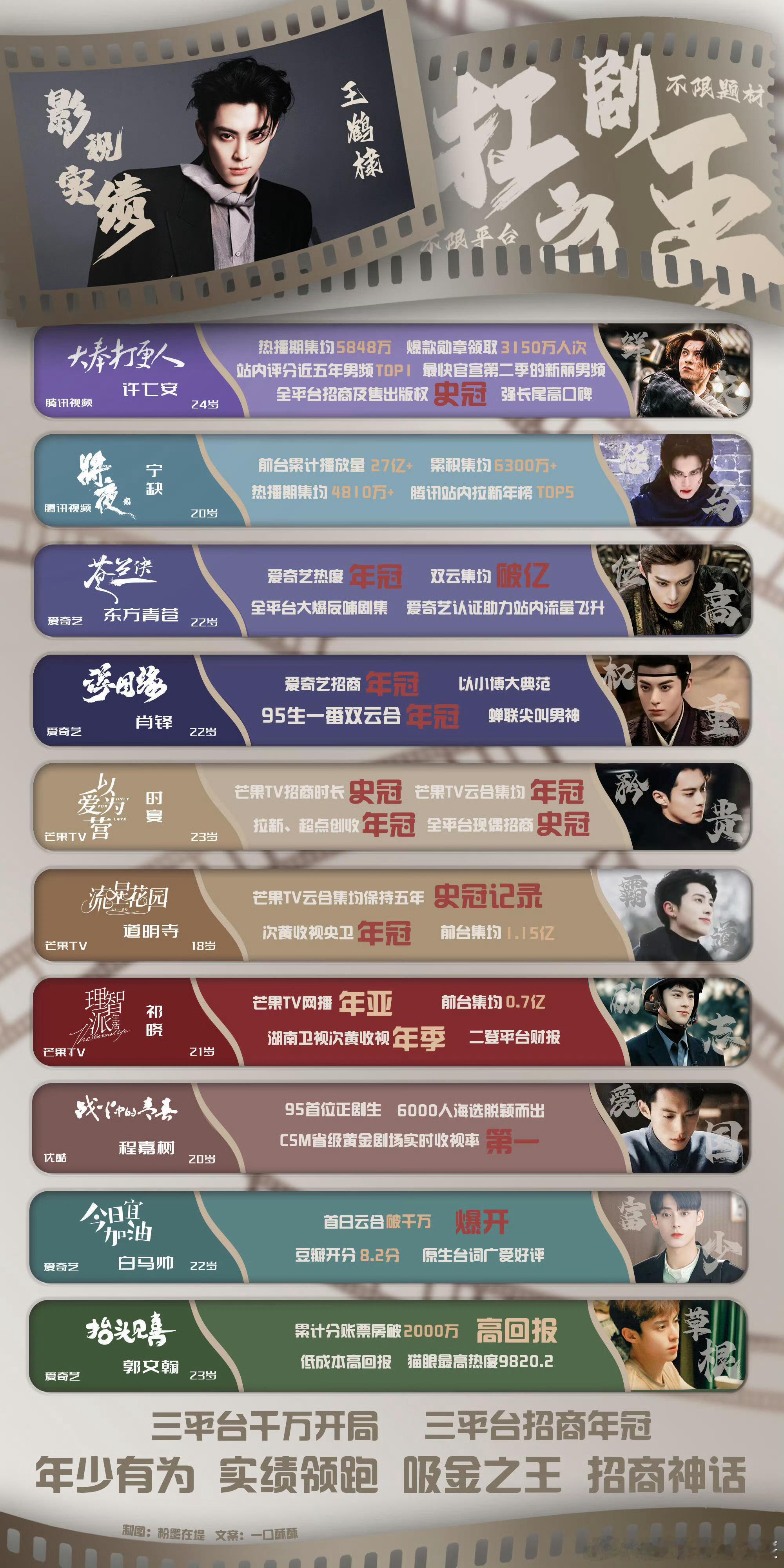 王鹤棣抬剧能力 一部部作品夯实实绩,王鹤棣主演=招商年冠已成为行业共识,IP抢着要,品牌争着投,抬剧力有目共睹。