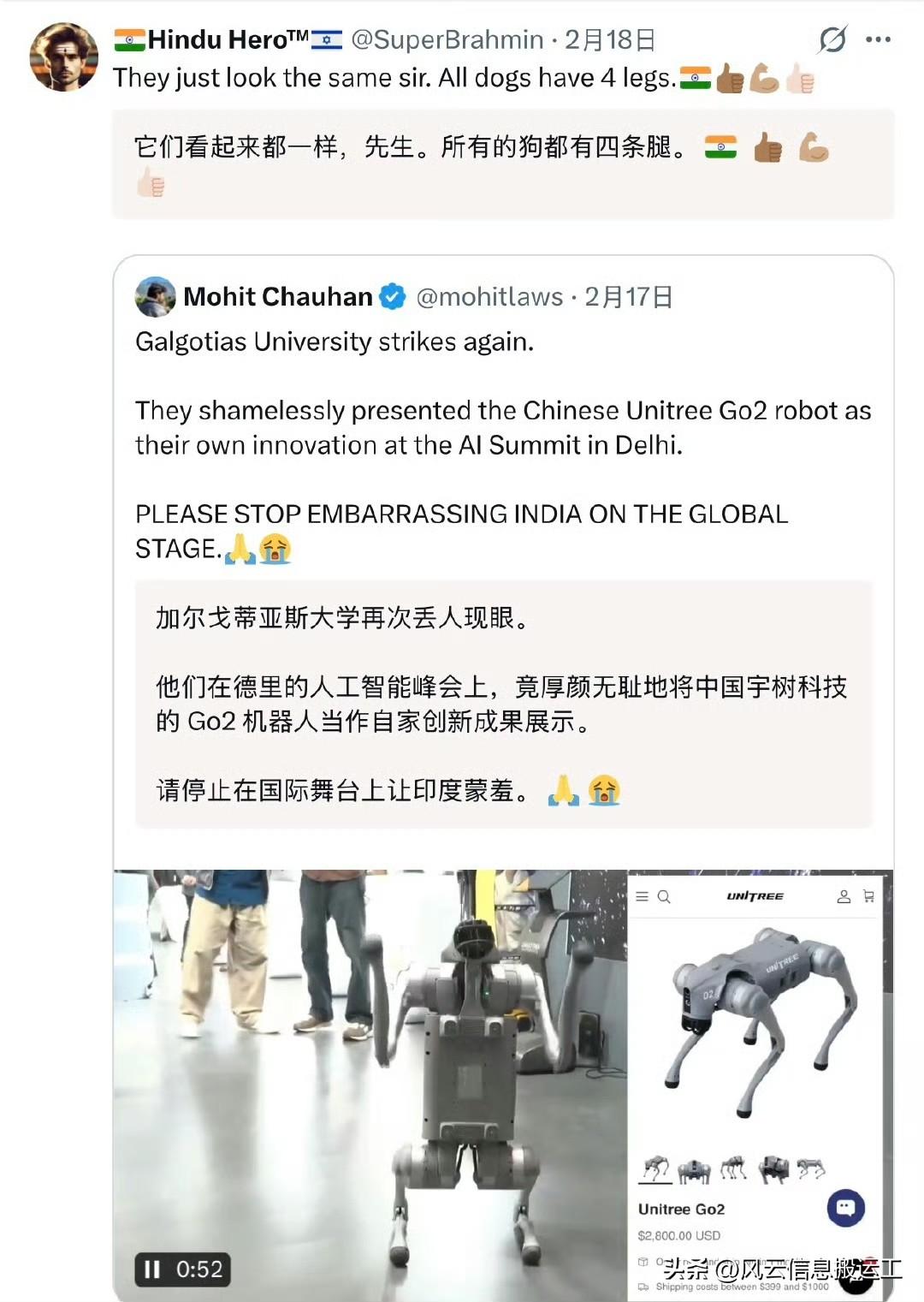 印度大学剽窃中国宇树机器狗事件持续发酵:印度媒体却真的炸锅了,女教授甩锅说我不懂