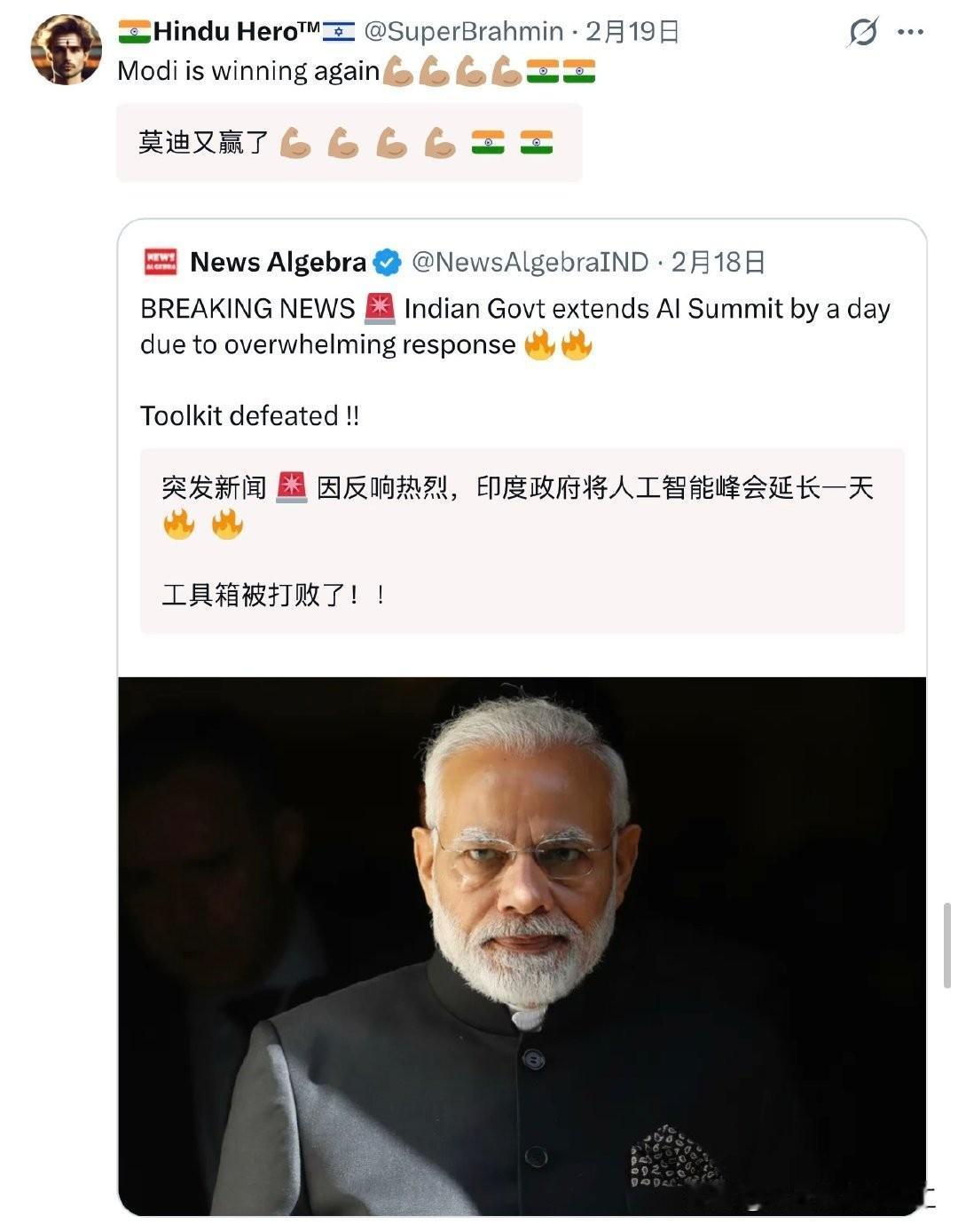 在印度新德里举办的AI影响力峰会上,莫迪发表了一番底气十足的讲话。他直言,外界对