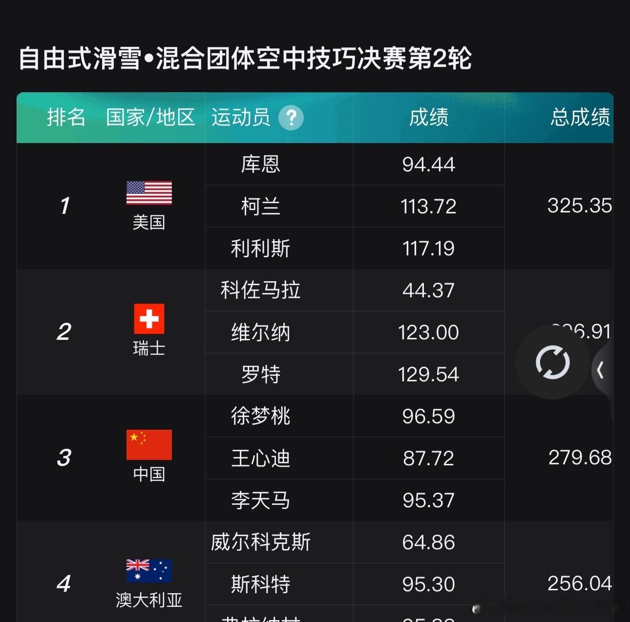 美国队真的好稳;恭喜卫冕徐梦桃王心迪李天马出战混团 中国空中技巧队铜牌徐梦桃王心迪李天马铜牌