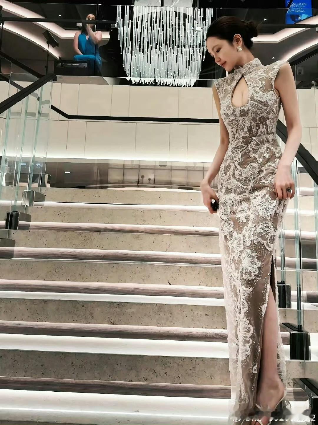 张天爱跟素人合影,胯真的好宽,大宅院似的