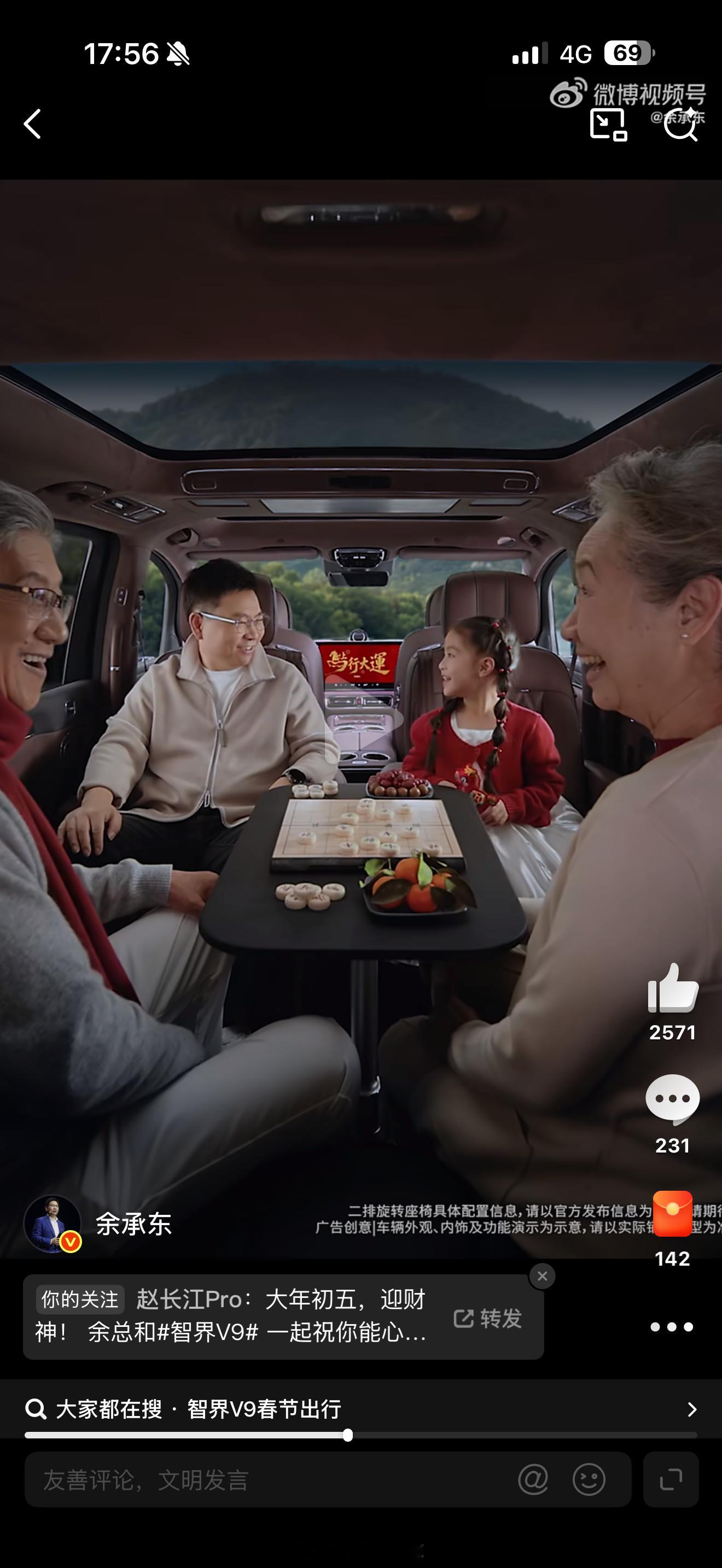 余总发的这个视频里能看到智界 V9 的二三排对坐模式,中间也可以支一个桌子,不出意外应该也是卡在座椅滑轨上。