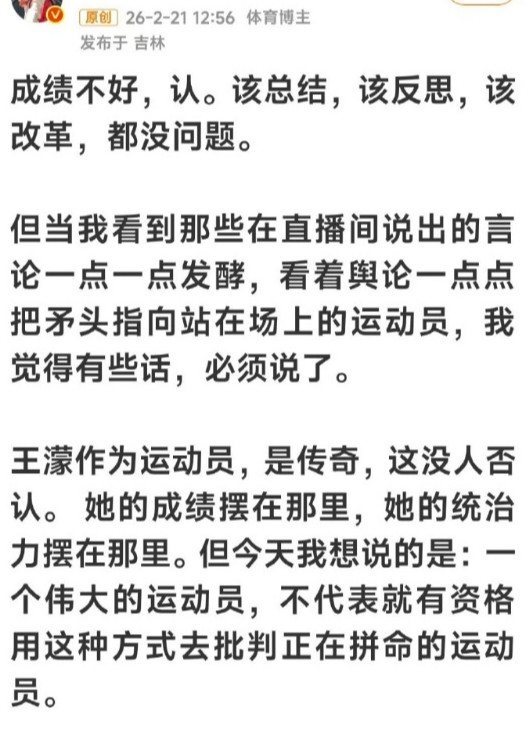 王濛言辞太偏激。公开炮轰、放话签生死状,更像情绪宣泄。队员已拼尽全力,赛场本有起伏,把所有问题甩给团队与管理层,既不客观,也伤士气,专业批评不该如此极端。