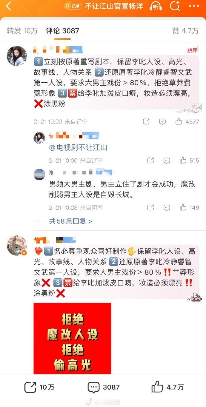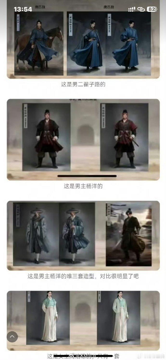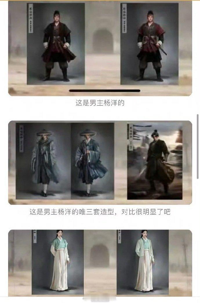 杨洋《不让江山》妆造概念照泄露,网友觉得目前看妆造是男三>男二>男一……男二男三 8套服装,男主5套,女主1套,还有2套是所有人都有的~虽然男主有颜也不用让妆,但配角也没必要这么出风头吧 男主的最难看