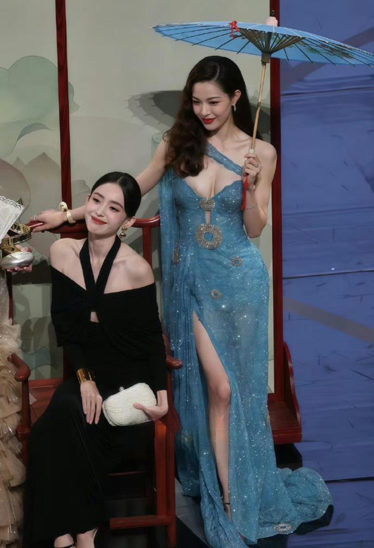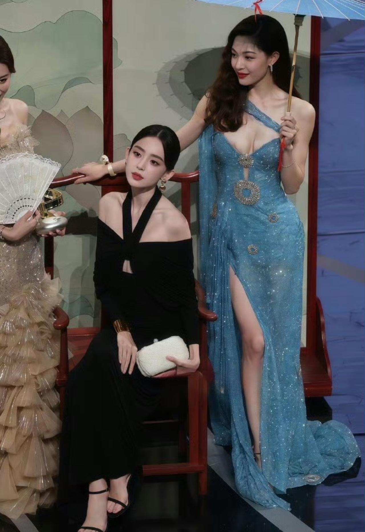 钟楚曦不愧是走在时尚前沿的明星,蓝色闪钻长裙也太会选了。 斜肩挖空设计勾勒出绝佳线条,高开叉直接把氛围感拉满。 裙摆的细闪在镜头下像揉碎的星光,配一把浅蓝色油纸伞,国风韵味直接焊在身上。 旁边娜扎的黑色礼服已经够亮眼,结果钟楚曦往那一站,明艳大气的气场直接封神。 我说句不好听的,这身衣服别的女明星穿上可能会显得艳俗,但是钟楚曦她的身上,只剩下好看了。