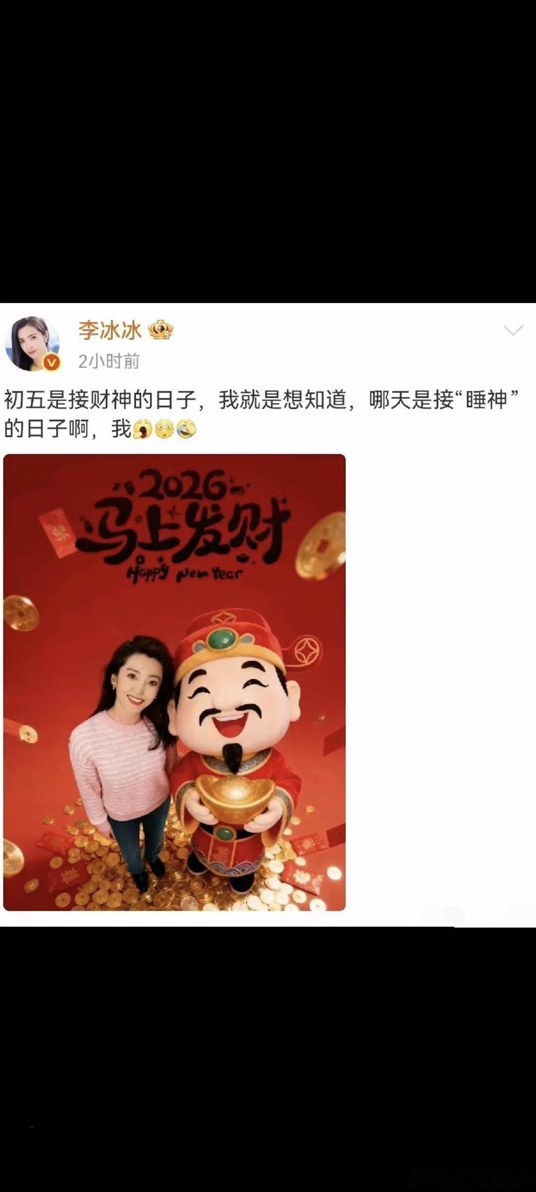 李冰冰这次碰到“硬茬”了大年初五,全网忙着迎财神,李冰冰的一句“我想知道,哪天是接睡神的日子”的吐槽,集结了一批同感的战友甚至有网友玩起了梗,李冰冰的“凡尔赛”烦恼,我们也想要还有人喊话,冰姐,把财神先给我,我的睡神送你了