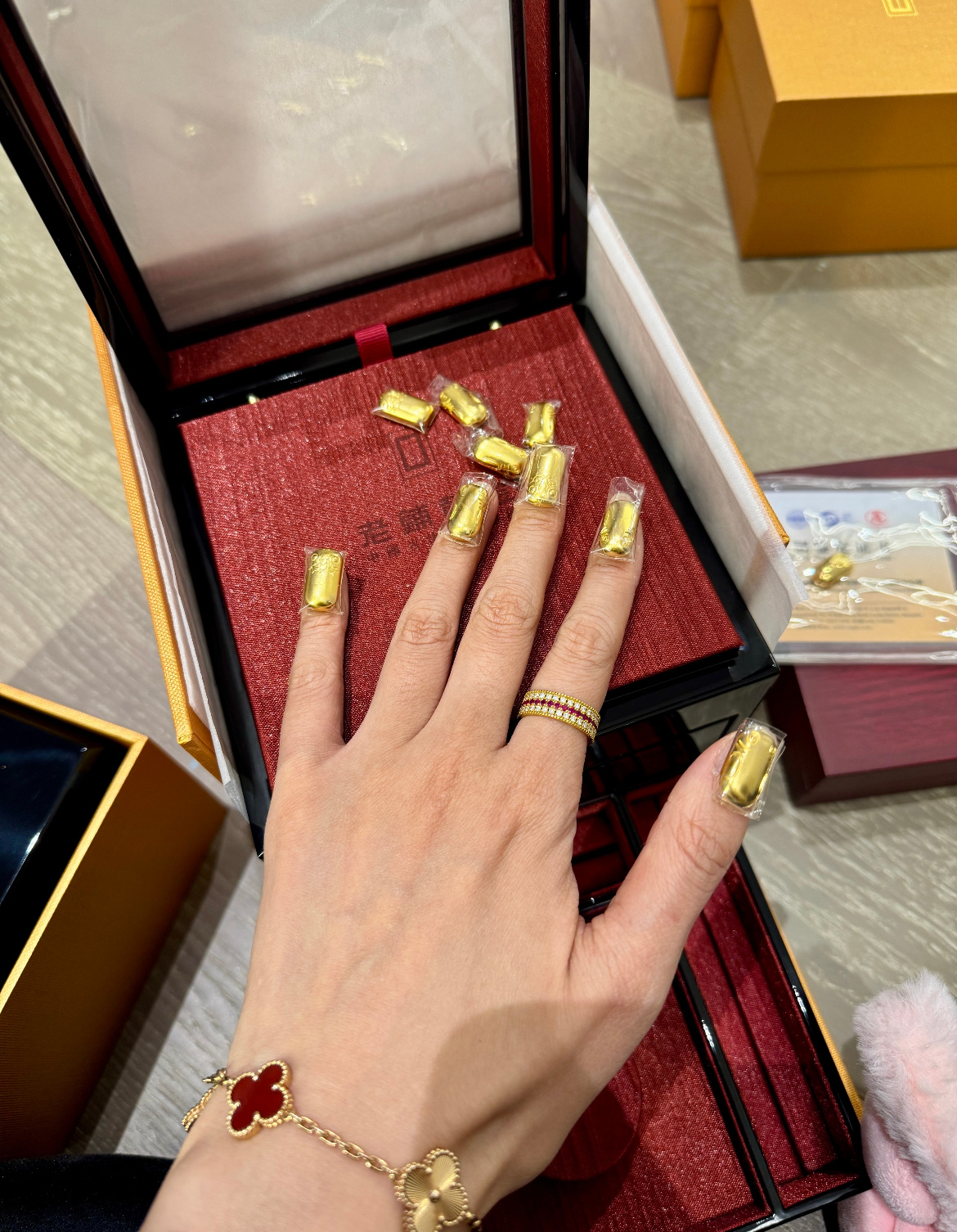 金价黄金忽然想到做了黄金美甲的姐妹太值了,过了一个美美的金灿灿的新年不说,过完年趁着涨价可以置换,也可以出手,还能小赚一点