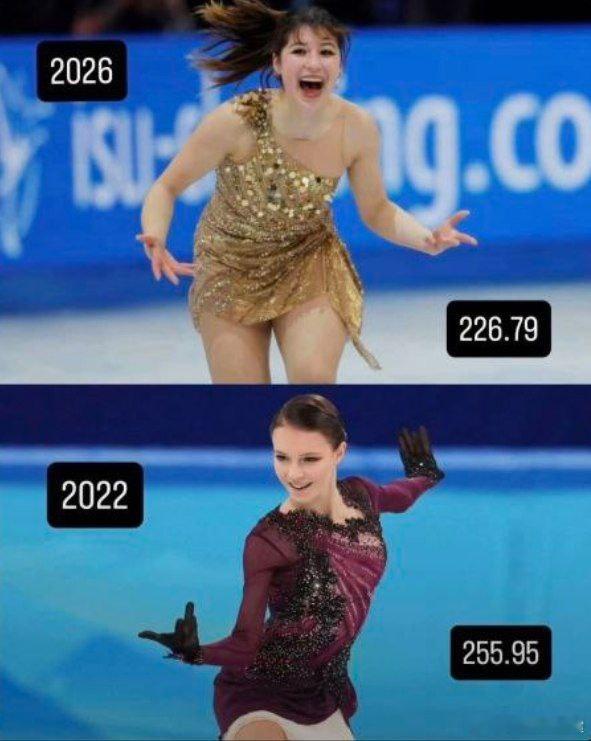 最近两届冬奥会花滑女单冠军最终成绩:刘美贤🇺🇸226.79谢尔巴科娃🇷🇺255.95