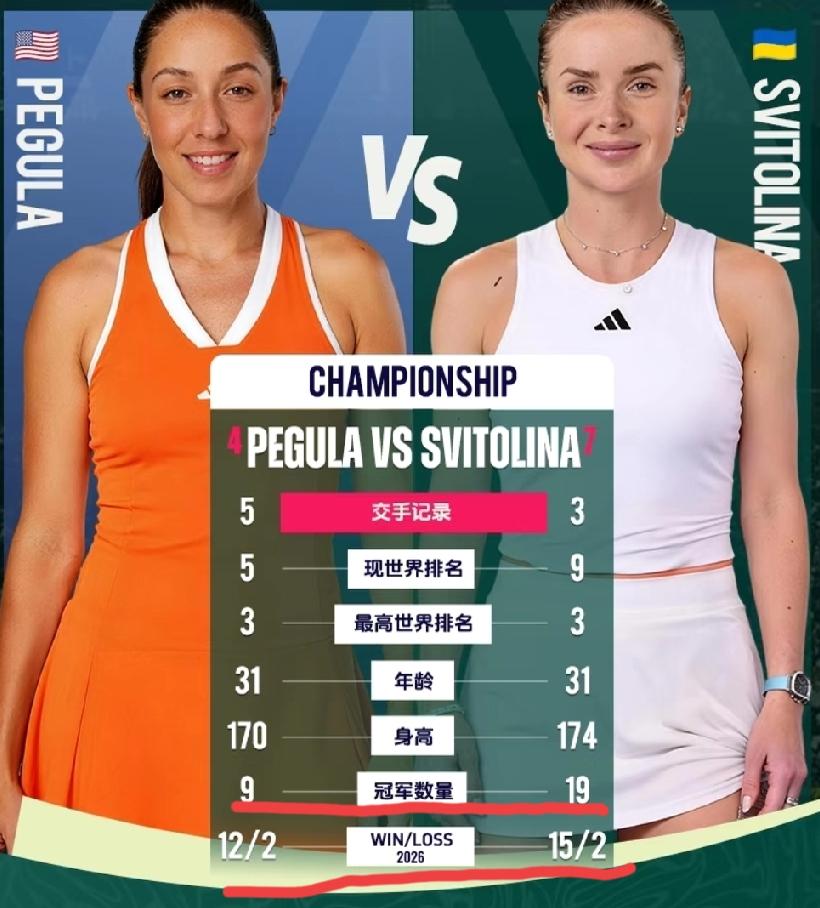 多项历史数据告诉我们:斯维托丽娜将赢得今晚WTA1000迪拜公开赛的冠军。 两位球员的巡回赛冠军数量:斯维托丽娜19:9遥遥领先佩古拉。 两位球员的决赛胜率:斯维托丽娜19/23,佩古拉只有9/20。 而且斯维托丽娜还保持了一项非常恐怖的记录,那就是她前四次闯进1000赛事的决赛,最后都获得了冠军,在1000赛决赛的胜率达到了100%。这四站比赛分别是2017年的迪拜、罗马和多伦多,以及2018年的迪拜。迪拜这个场地可以说是斯维托丽娜的福地。 大家看好斯维托丽娜第三次捧得迪拜公开赛的冠军奖杯吗?