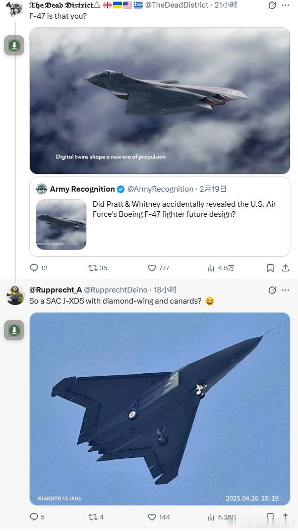 日耳曼赢学 小黄人嘲笑F47有鸭翼和腹鳍图1为早期445测试中队的含F47、B21、F22、F35外形的徽章、绰号灭鳖四圣。图2为最新出炉的F47普惠公司建模,出现了鸭翼和腹鳍。这就很符合图4、图5雷神公司在2017年的建模、改进就是取消垂尾。图5是德国小黄人嘲笑F47有鸭翼和腹鳍。