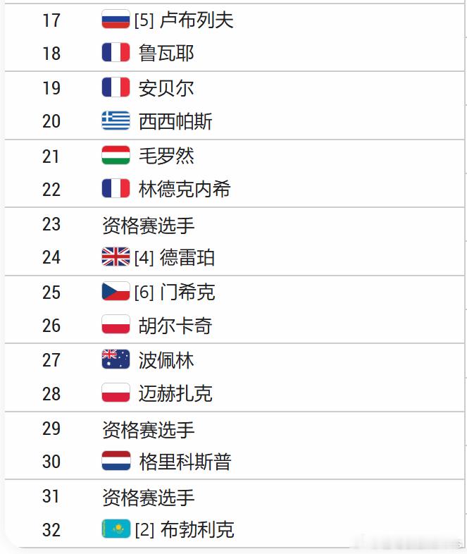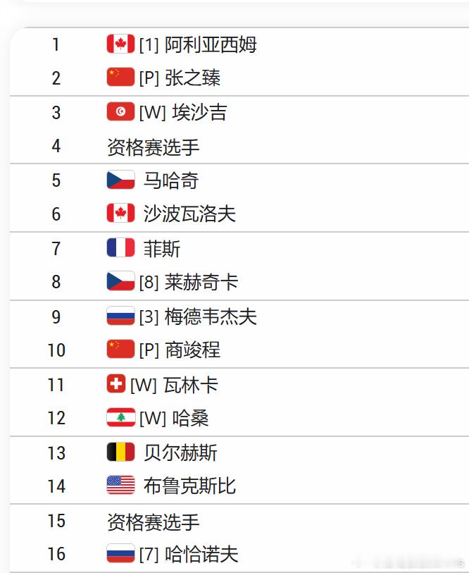 阿利亚西姆头号种子,中国球员张之臻和商竣程都用保护排名出战。这次比赛签表,中国球员的运气不好,张之臻首轮面对1号种子阿利亚西姆;多哈之后商竣程首轮再次对阵梅德维德夫。
