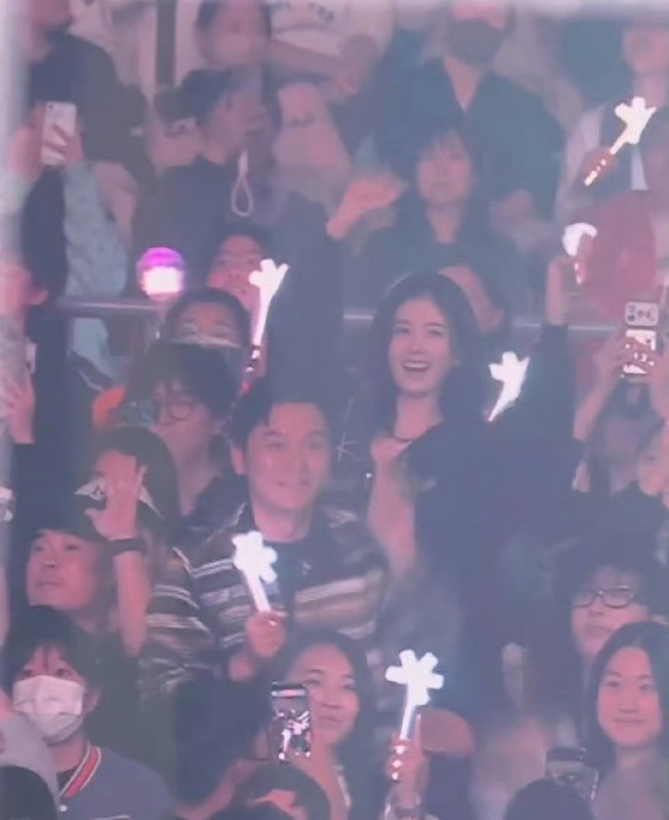 张天爱跟素人合影,胯真的好宽,大宅院似的