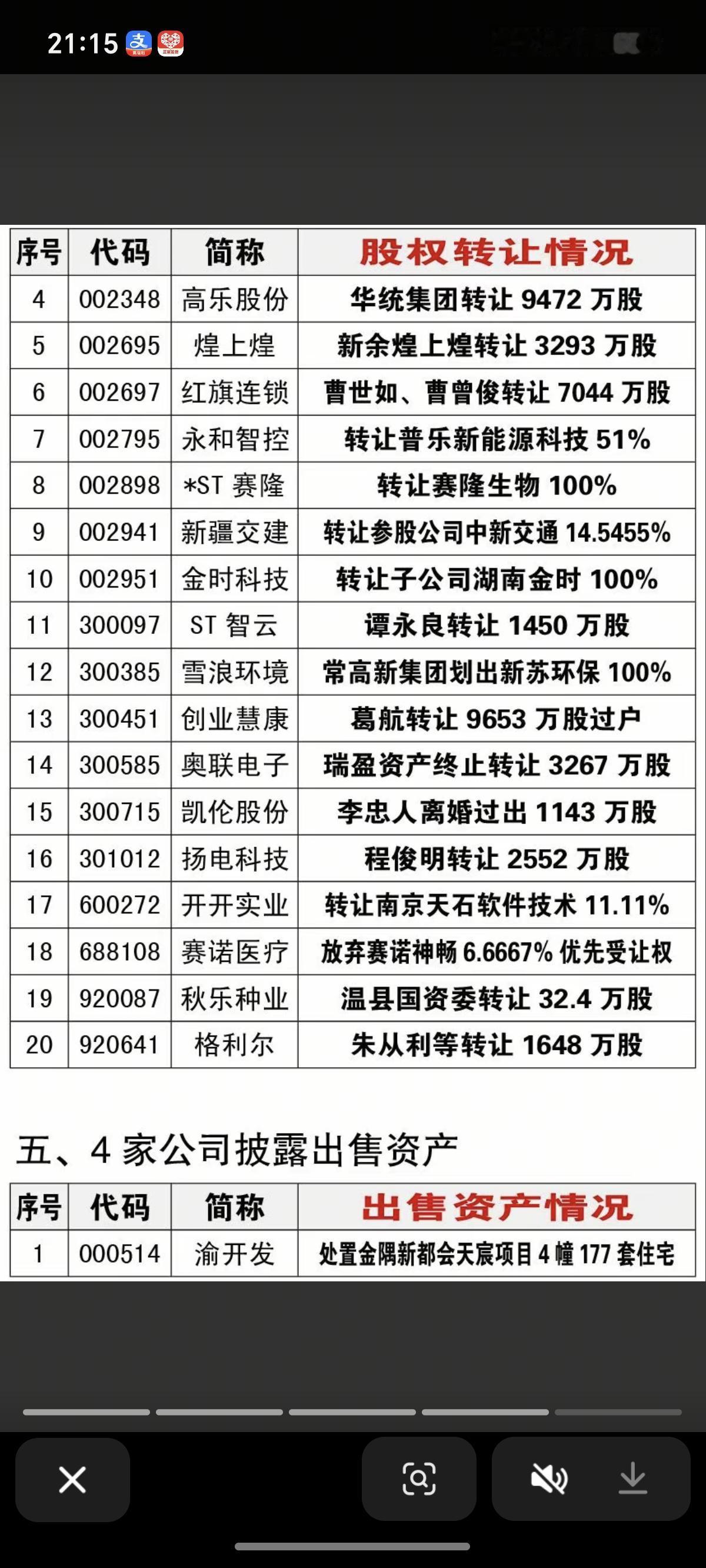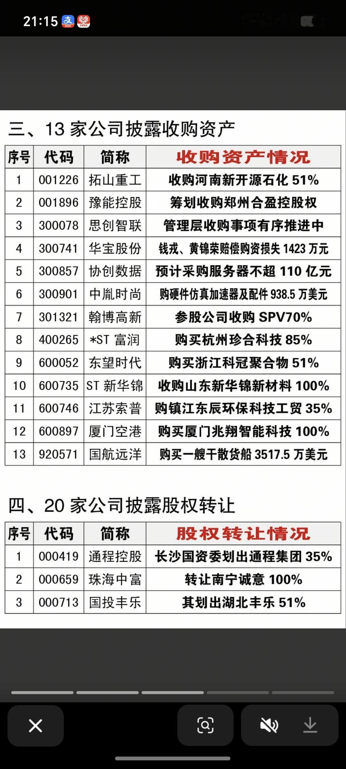 2.21周六 最新:资产重组、股权转让、实控人变更公告! 25家公司披露资产重组 7家实控人变更 20家公司股权转让 13家公司收购资产,4家出售资产