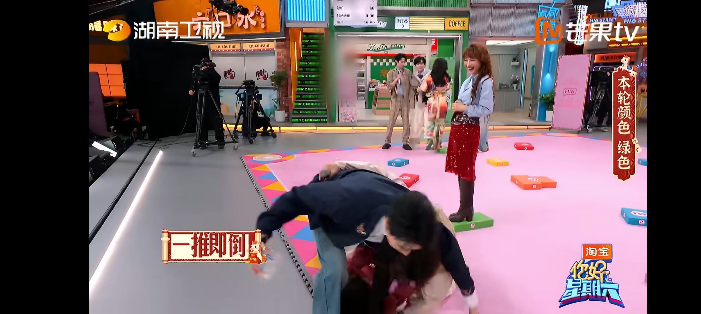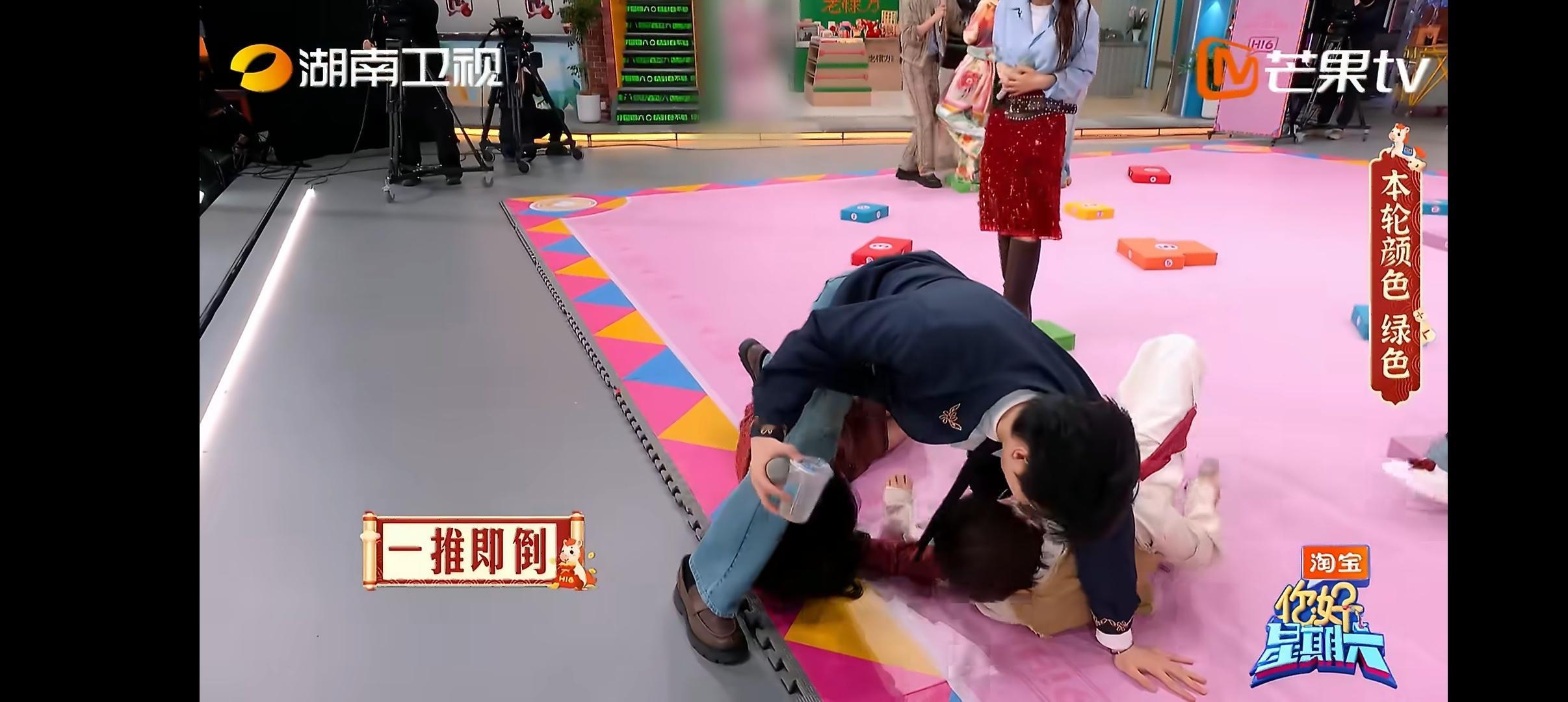 吴昕一掌推翻一团人 哈哈哈哈被吴昕笑亖,为了抢答题权,直接上手推了何炅、魏大勋、杨蓉的抱团,没想到他们三人也是一推即倒你好星期六