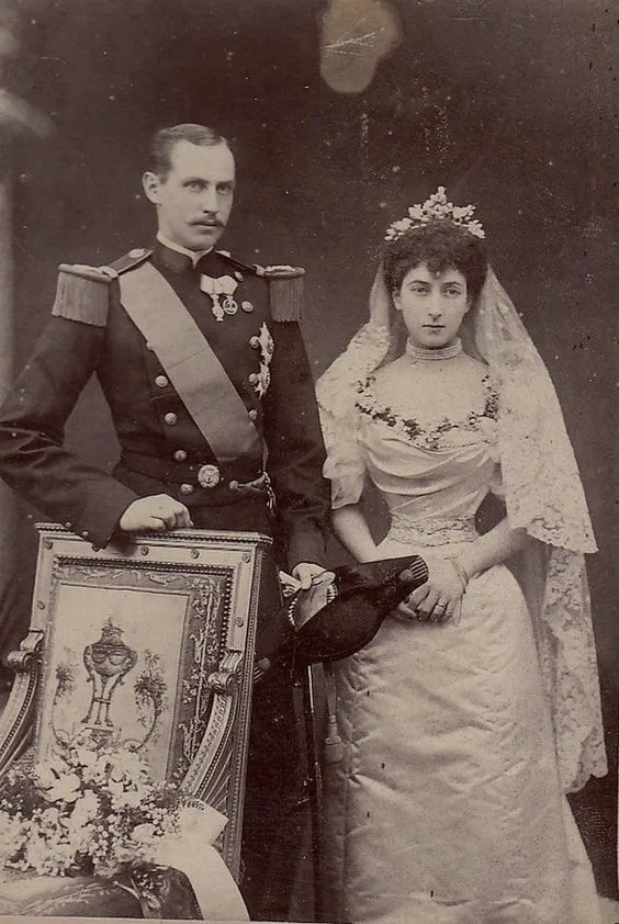 【来自投稿】1896年,英国威尔士公主莫德和丹麦王子卡尔的结婚照。九年后他们成为挪威国王和王后