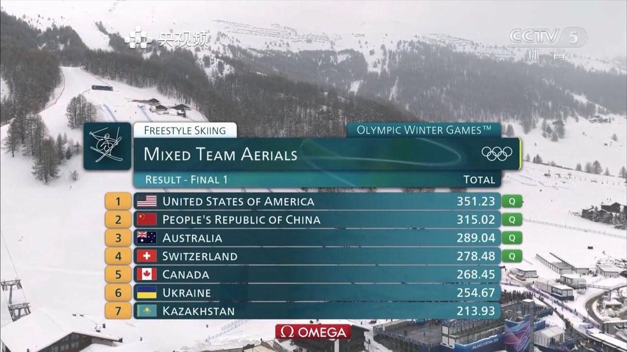 徐梦桃王心迪李天马出战混团 米兰冬奥会空中技巧混合团体决赛晋级队伍美国,中国,澳大利亚,瑞士目前美国第一阶段得分351.23分比上届美国队夺冠分数高出13分之多,338.34分做法做法
