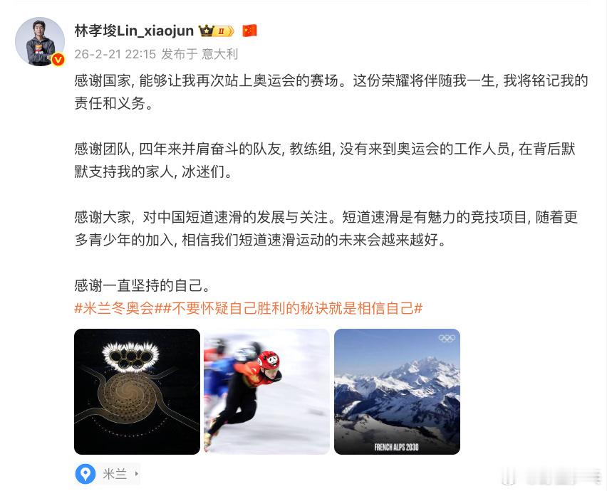 林孝埈四个感谢林孝埈发博总结冬奥