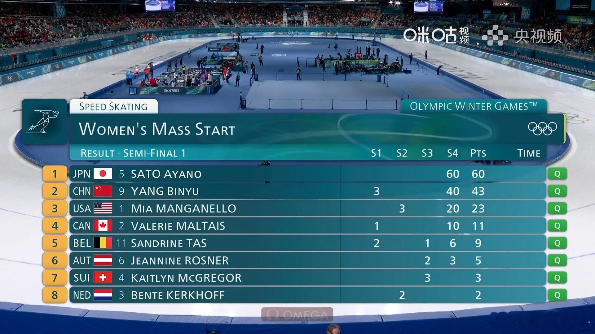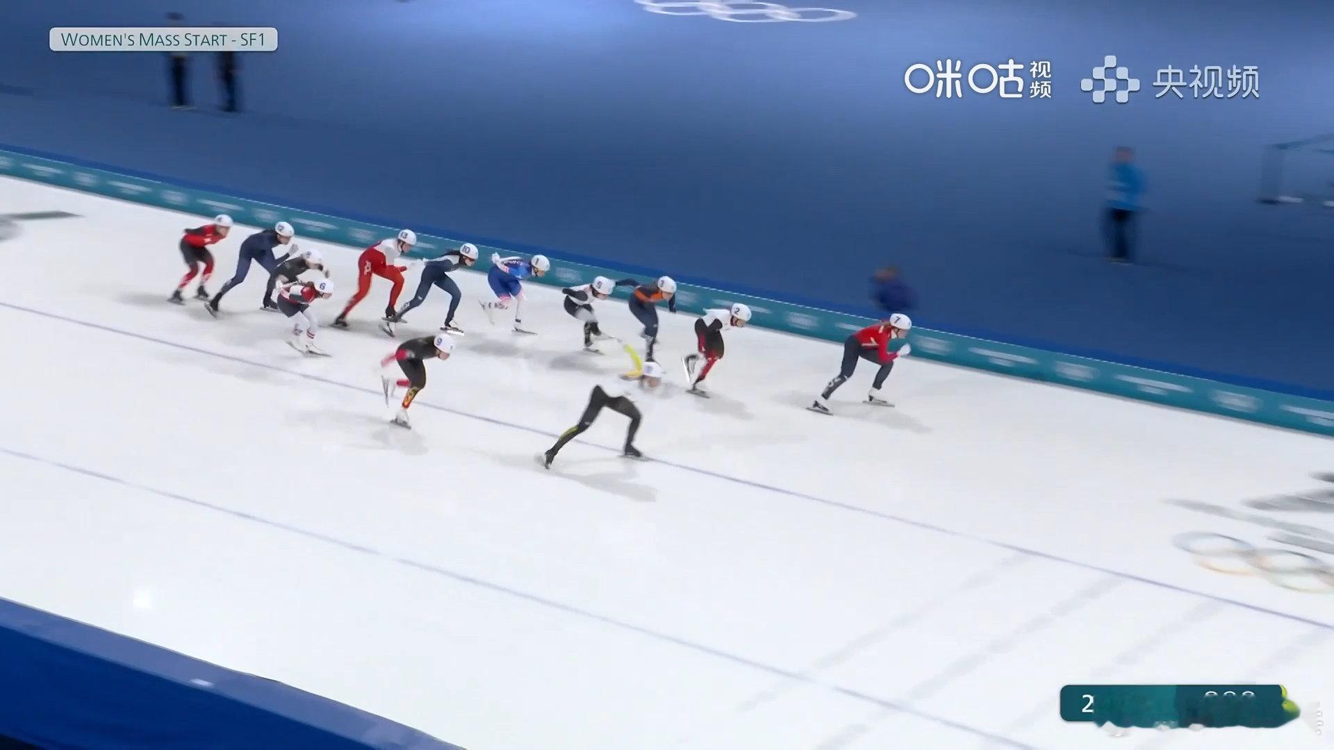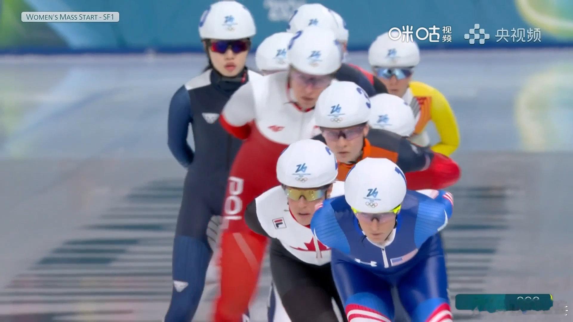 杨滨瑜集体出发进决赛米兰冬奥会速度滑冰女子集体出发半决赛第一组,中国选手夺得43