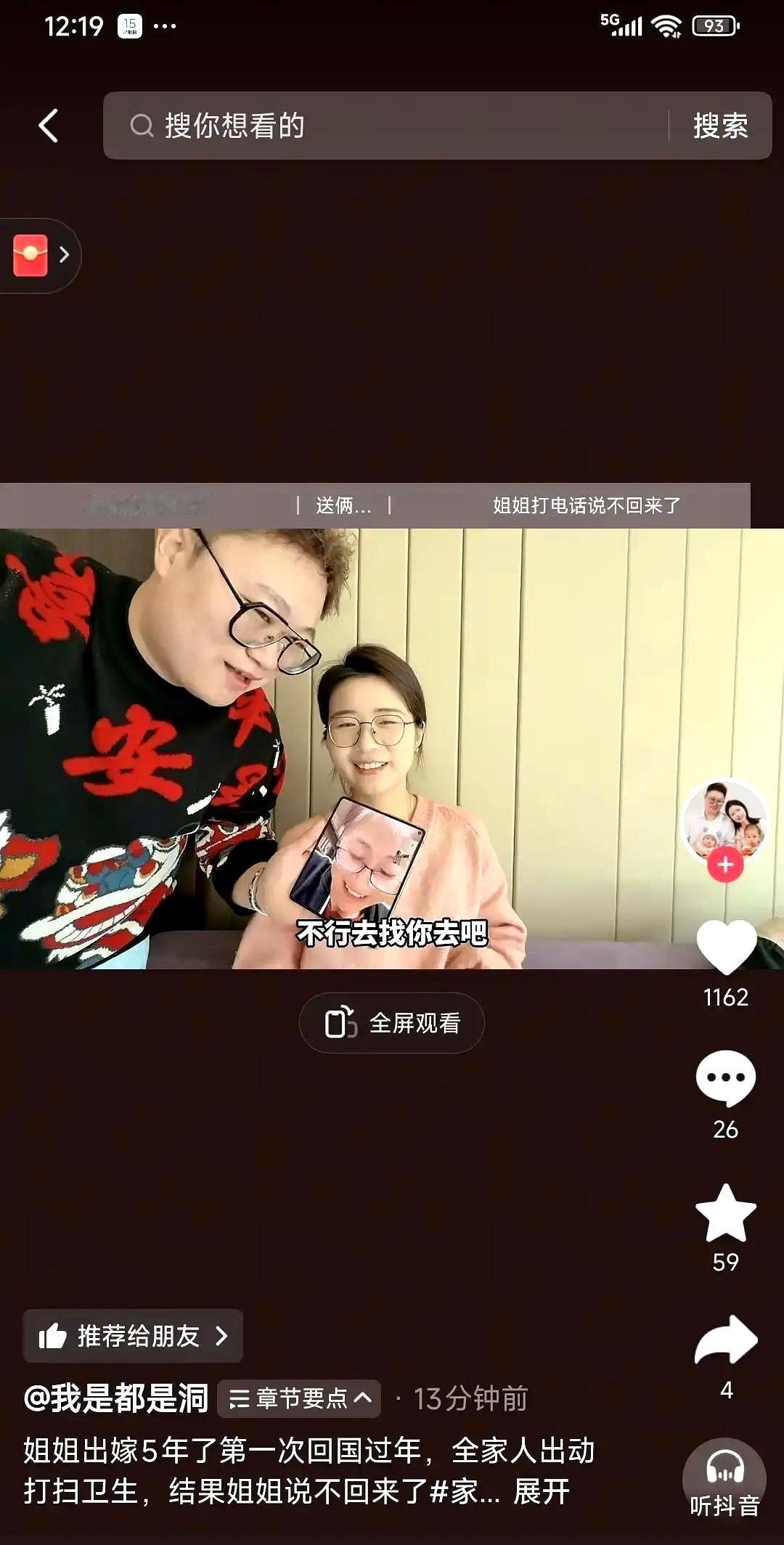1月20号晚,12万人同时在线,洞姐一句“医疗支援项目走不开”把春节回国票瞬间按了暂停键,转场的却是她弟弟,第二天在抖音对着机票订单宣布全家直飞洛杉矶,理由简单粗暴——年在哪人在哪。 镜头换到加州厨房,擀面杖和速冻猪肉馅成了出镜率最高的道具,短短24小时点赞破千万,根据抖音数据显示同档期家庭类视频平均互动率仅0.8%而洞家这支首秀冲到3.6%,弹幕从“洞门弟子集合”刷到“我妈让我学这个褶”,这种势能有点像把乡味塞进流量漏斗越接地气越值钱。 问题来了,这波走红是内容团队算出来的公式还是临时买机票的真情流露,从目前账号更新节奏看姐姐依旧连轴转医院项目弟弟负责拍吃住日常两线剧情无缝衔接,一边展示医疗援助的硬核专业一边撒家庭团聚的烟火气,观众获得的情绪颗粒比架着灯光的访谈更细,数据也在佐证互动峰值出现在包饺子那一刻而不是任何专业讲解。 这恰好击中了短视频行业最难复制的密码——信任感,品牌预算可以堆起布景却买不来这层血缘关系,当兄妹真诚地把工作与团聚两难的现实端到台前用户立刻用转发和评论投票,反而让“春节不回家”这件看似违和的决定挂上了温度,换作空降的营销策划恐怕只能收获无情的左滑。 所以我更愿意把它理解为一次意外的社会实验,如果亲情能让人跨越一万公里去端起同一盘饺子也说明互联网的连接感在升级,我们需要的或许不是越来越精致的拍摄而是一个敢于说“我追过去陪你过年”的人和他的行动,至于这股暖流能不能持续得看接下来他们如何平衡公益项目的专业输出与家庭日常的烟火叙事,各位也不妨留言说说你的年味打算被谁点燃。