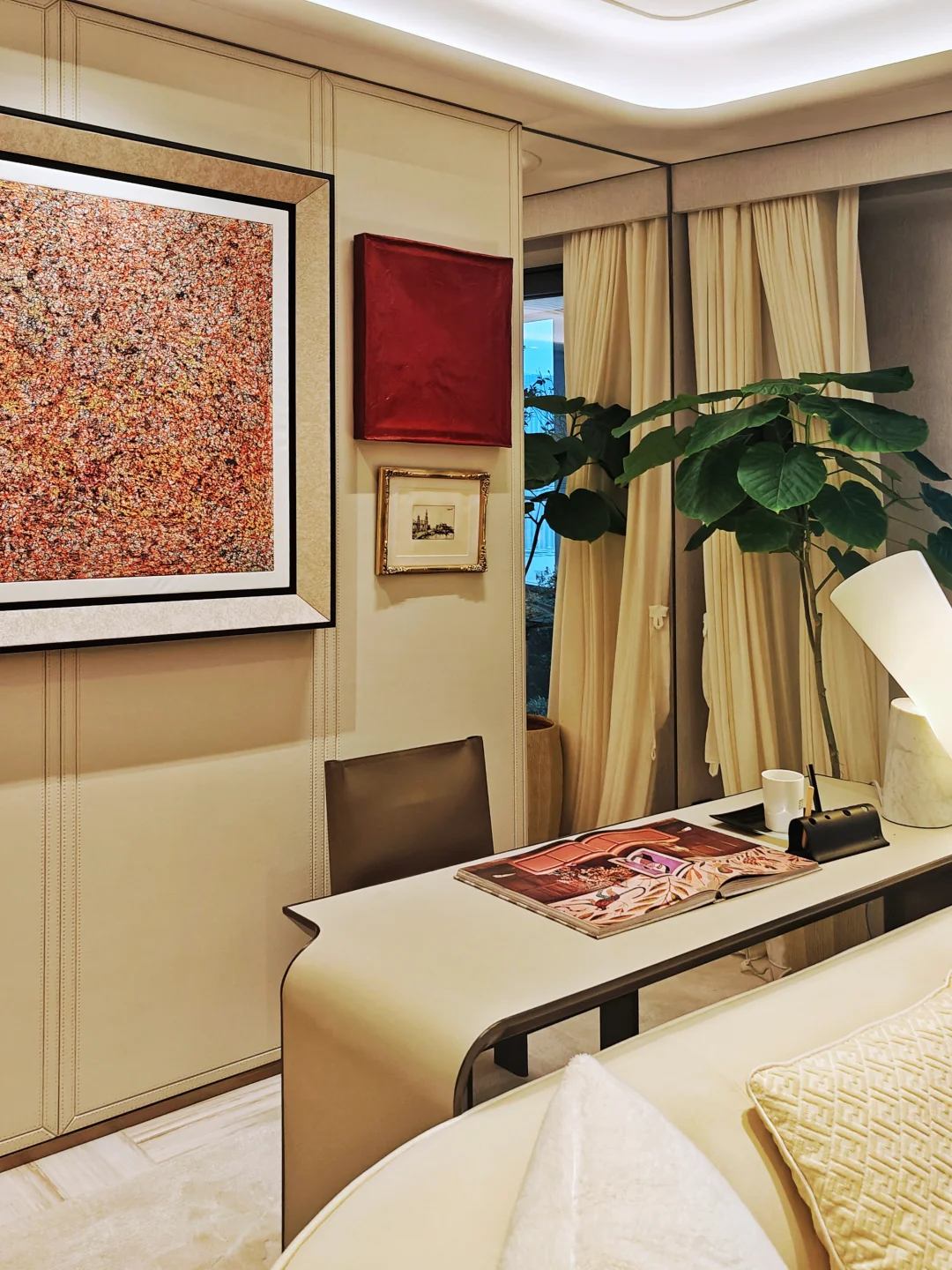 🏢这次和展览同期开放的是二批次,125㎡户型套数大幅度提升,样板间正是这个上海一线滨江超级稀缺的jue版小户型,中产努努力也能够到的门槛,可以打通的X空间、独立岛台、大尺度阳台、主次卧都配置的大飘窗、顶配的厨卫、独特健康空气系统和全维净水系统都让人疯狂心动!入户门把手、艺术门牌挂画是可以定制的艺术家联名,墙面饰面&岛台等区域也提供多款石材/岩板款式,保证高品质的同时也让个性化成为可能。