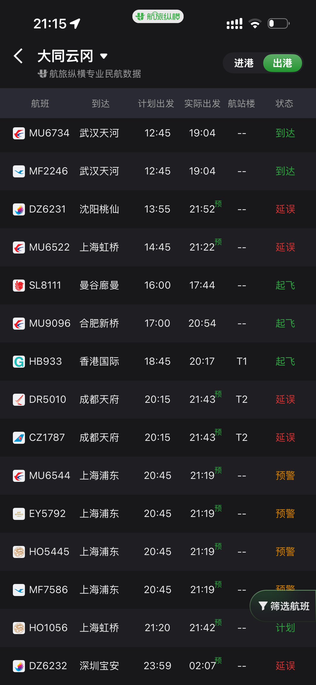 北京大兴机场从下午开始连续发布天气警报,提醒有颠簸和风切变。21日晚8点26分到42分,出现风切变。资料显示,风切变是一种大气现象,是风矢量(风向、风速)在空中水平和(或)垂直距离上的变化。发生在低空的风切变是飞机起飞和着陆阶段的一个重要危险因素,被人们称为“无形杀手”。大兴机场航班出现小面积延误,红星新闻记者注意到,从下午开始,不少航班起飞时间都延迟半个小时以上。
