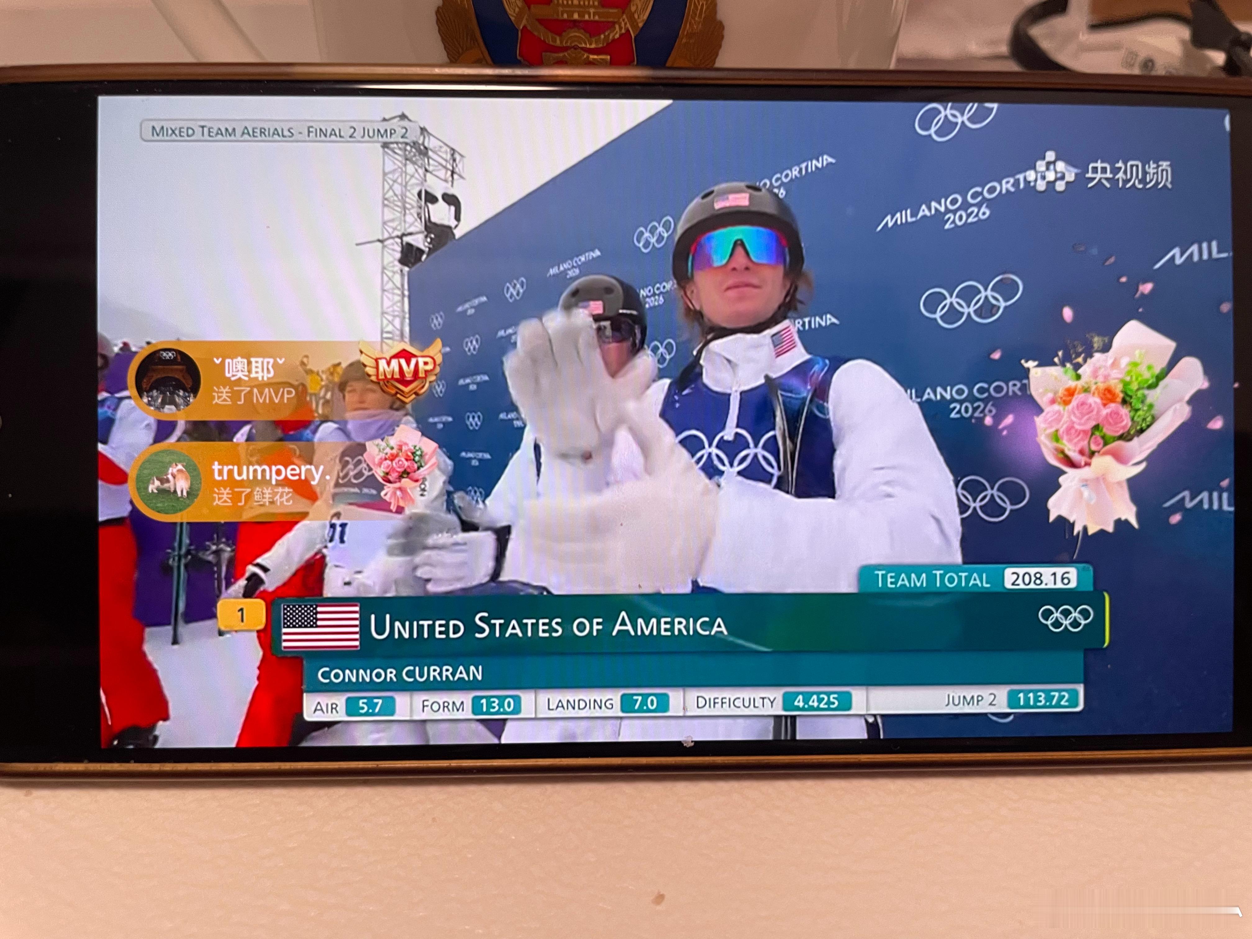 美国队团体太稳了空中技巧混合团体决赛中国空中技巧队进决赛次轮 两轮结束208.16排名第一中国184.31第二,瑞士第三