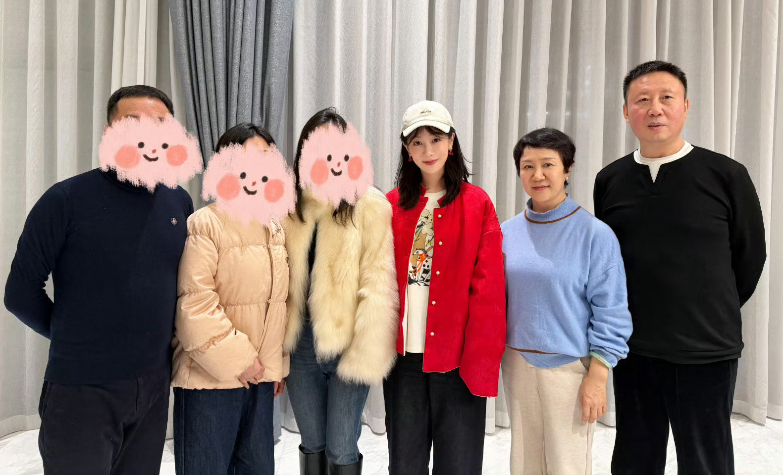 张天爱跟素人合影,胯真的好宽,大宅院似的