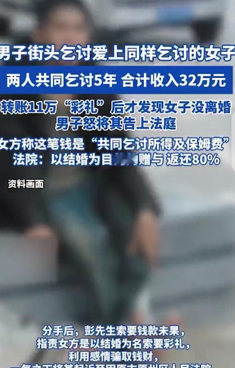 “比电视剧还狗血!”宁夏,一离异男子街头乞讨,爱上同样乞讨的女子,女子说她也离婚了,2人同居并联手乞讨5年,讨了32万,女子要20万彩礼,男子给女子11.19万彩礼,想娶她为妻,给完才发现她是有夫之妇,男子被耍了,可把他气炸了,直接把女子告上法庭,要求退回11.19万,女子却一口咬定:11.19万是共同乞讨所得及保姆费。法院判决出乎意料。 彭某的生活并不富裕,早年因为婚姻破裂,生活陷入了低谷。离婚后,他没有孩子,所有的压力几乎都压在了自己一个人身上。 为了生计,他开始在街头乞讨,日复一日,久而久之,他也习惯了这样的生活,虽然每晚的睡觉地点从不固定,但至少能填饱肚子。直到某一天,他遇到了张某。 张某也是一个离婚女人,原本在家里做些零工,结果婚姻破裂后,生活同样变得困难。她开始在街头乞讨,逐渐与彭某相识。 他们在一次街头相遇时相互打了个招呼,话不投机却莫名其妙地聊了起来。彼此的生活困境让他们产生了深深的共鸣。在那个寒冷的冬夜,彭某和张某开始了第一次的深入交谈。 “你也是离婚的?”彭某看着张某,有些怯怯地问道。 “是啊,”张某叹了一口气,点了点头,“我和前夫有了些不愉快,就分了。” 两人因为相似的命运和相同的处境,很快成了朋友。他们决定一起走下去,或许是孤独使然,也或许是对生活的不满,他们在彼此的陪伴中找到了些许的慰藉。 彭某和张某很快开始了同居生活。他们搬进了一个简陋的出租屋,虽然环境差,但毕竟有一个遮风挡雨的地方,勉强可以称为“家”。 两人每天一同外出乞讨,有时站在十字路口,有时坐在公园的长椅上。 他们配合默契,互相照顾。有时,张某会去买些便宜的食物,彭某则会为她分担重物。虽然生活贫困,但彼此之间的默契与依赖让他们有了一些生活的希望。 然而,乞讨的收入并不稳定。两人靠街头行乞为生,每个月的收入大概也只有几百块,偶尔能碰到好心人,给些更多的钱。 随着时间的推移,他们慢慢积攒了一些小钱,并且有了一个看似不错的目标——改善生活,追求一个能安稳下来的未来。 “咱俩在一起这么久了,为什么不正式结婚呢?”张某有一天突然提出。 “嗯,结婚当然是好事,”彭某有些犹豫,“你也离婚了,咱们可以重新开始,或者说,我给你点彩礼,我们就成个家。” 张某听后,心里突然有了主意,她回答得极为爽快:“好啊,彩礼当然得有,毕竟你也要对我负责。你看,20万吧,给个面子。” 彭某一听,顿时有些傻眼。自己没多少钱,能筹到20万的确很困难,但为了和张某过上好日子,便决定拼尽全力。 他开始四处筹款,最终通过一些小额贷款和借款的方式,凑齐了11.19万——他心想,如果给了她这笔钱,或许她会答应自己,过上安定的日子。 于是,彭某按张某的要求,交出了11.19万的彩礼,希望能和她成婚,过上稳定的生活。然而,在他心里,却逐渐滋生出一种不安感。 这个不安并不是因为张某提出的彩礼,而是他渐渐发现张某在某些细节上开始显得有些不同寻常。 她开始时不时收到一些陌生的电话,有时外出的时候总是匆匆而行,言语中也常常带有一些隐瞒的意味。 一天,彭某终于忍不住,面对面地问张某:“你是不是有别的男人了?” 张某脸上顿时浮现出一丝冷笑,她漫不经心地答道:“你怎么想都行,但我怎么生活是我的事,跟你无关。” 彭某彻底蒙了。他开始怀疑,自己这段感情是不是一场骗局。终于,他通过一些途径,查明了一个惊人的事实——张某根本没有和他结婚的打算,她的真正丈夫早就在外地。 那11.19万彩礼,不过是她和彭某的“合作”所得——她和彭某共同乞讨、共同生活,而这笔钱只是她眼中的“保姆费”,是她伺候彭某的“报酬”。 彭某愤怒至极。他感到自己被深深地背叛了。于是,他决定将张某告上法庭,要求她返还那笔已经交出去的彩礼。 法院最终作出了判决。根据相关法律,彩礼本质上是赠与性质,若婚姻没有成立,赠与人可以请求返还。 法院认为,彭某给的钱是以结婚为目的的赠与,因此张某应当返还这笔钱。 虽然张某辩解称这笔钱属于共同所得,但法院认为她并没有充分证明这点。因此,判决张某应返还11.19万元中的80%,即8.95万元。