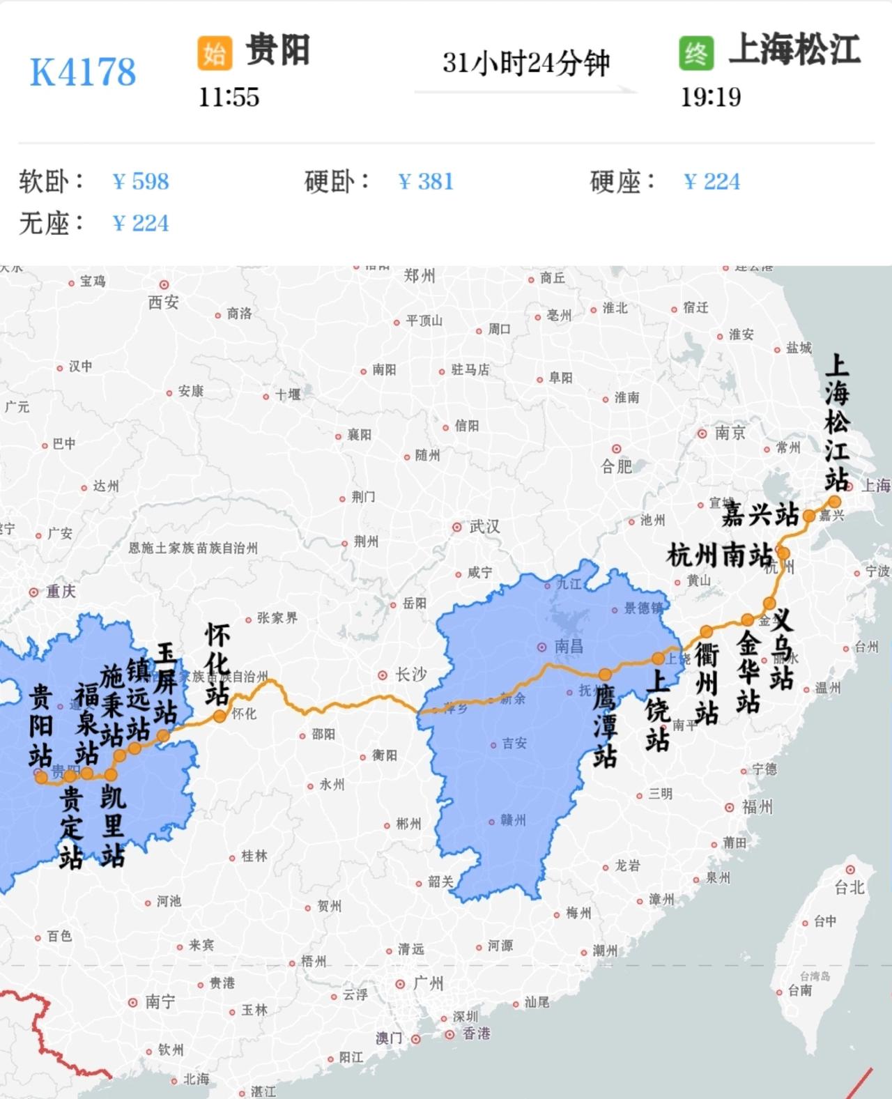 2026年2月19日–3月6日增开贵阳–上海松江K4178次,贵阳站11:55开,第二天19:19到上海松江站,用时31小时24分钟。 真实生活分享官