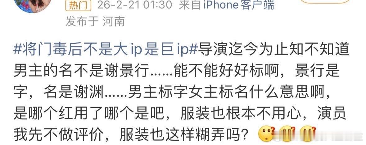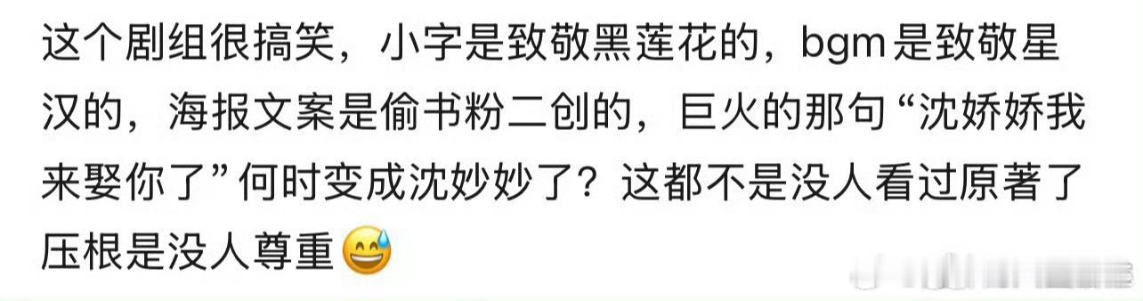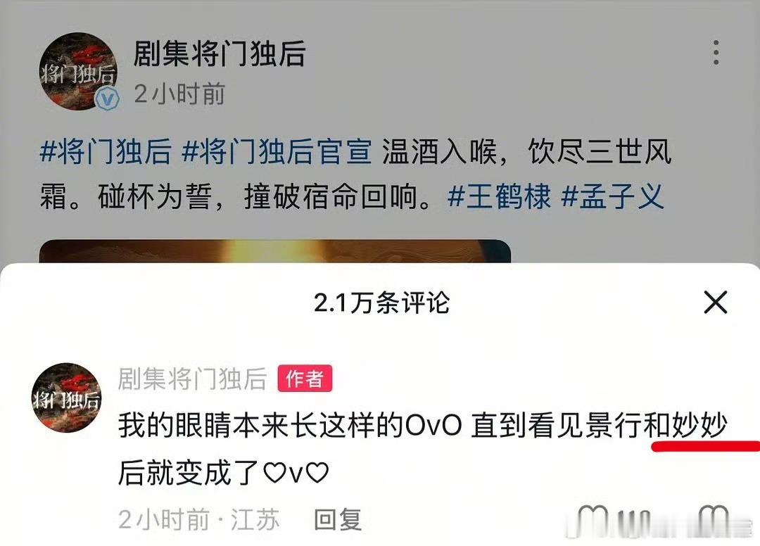将门独后开机官宣不足48h 1️⃣女主🎵官宣视频用了《星汉灿烂》程少商的人物主题曲,惹怒《星汉灿烂》剧粉2️⃣🧣官宣海报男主本名谢渊,字景行,海报直接写的王鹤棣饰谢景行,惹怒淑芬被质疑剧组无人阅读过原著,惹怒《永夜星河》剧粉/《黑莲花攻略手册》淑芬(也是没想到🐟🥩粉有一天能团结在一起)3️⃣🎵评论区称呼谢景行为景行沈妙为妙妙,众所周知沈妙小名为娇娇,惹怒淑芬再次被质疑片方无人看过原著片方今晚将发奋图强连夜阅读原著