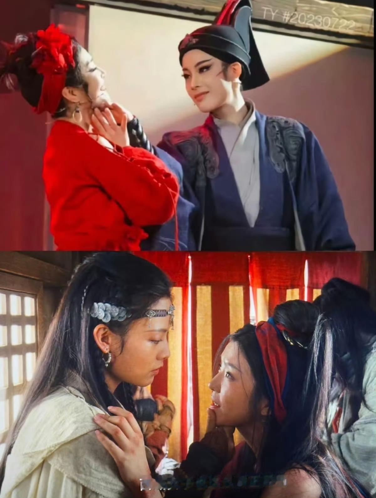 没想到陈丽君和李云霄会出现在同一部武打电影里,又惊喜又意外! 这一对越剧界的顶流搭档,如今双双出现在武侠片里,跨界成功! 两个人在镖人同框的画面,瞬间让人回到新龙门客栈,红楼梦,陆游与唐婉,一时间有点恍惚,李云霄终于调戏了一回陈丽君[捂脸]! 陈丽君不管是男装还是女装都很帅,从内到外都透着英姿飒爽的帅气,李云霄则是风情万种的妩媚! 陈丽君的飒和李云霄的媚,真是绝配! 陈丽君