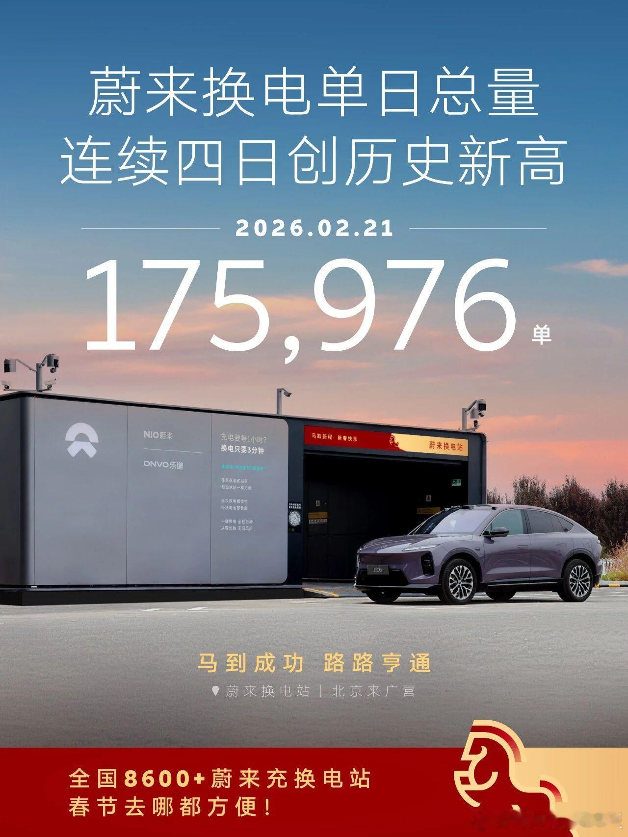 2月21日蔚来换电175,976次连续四日创新高!