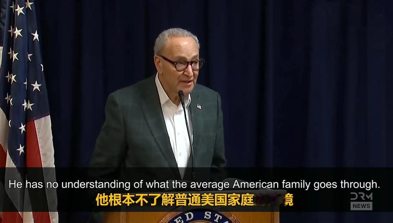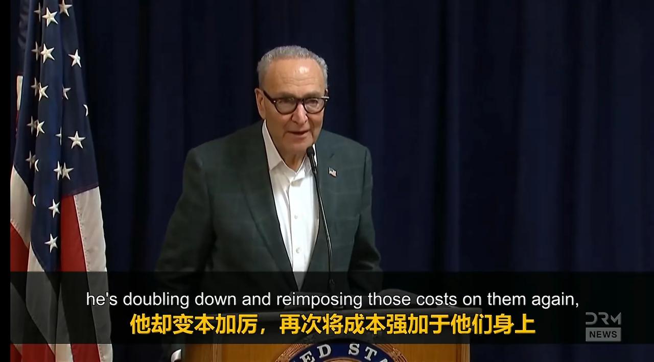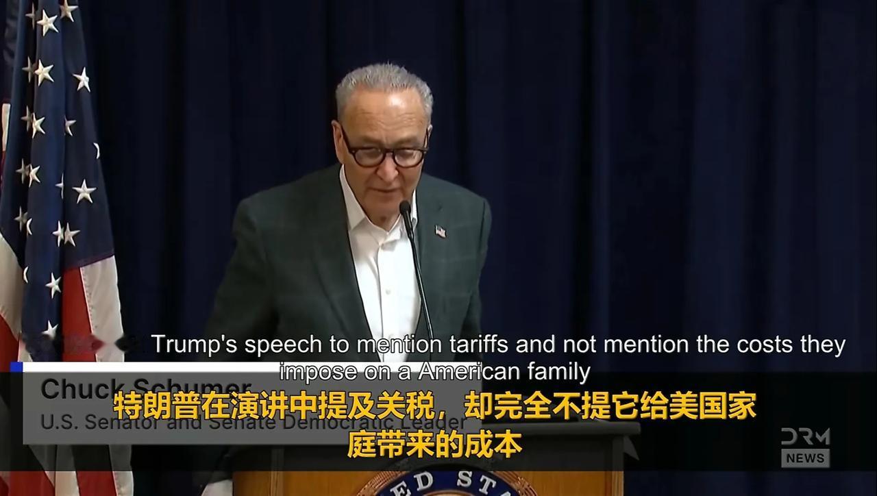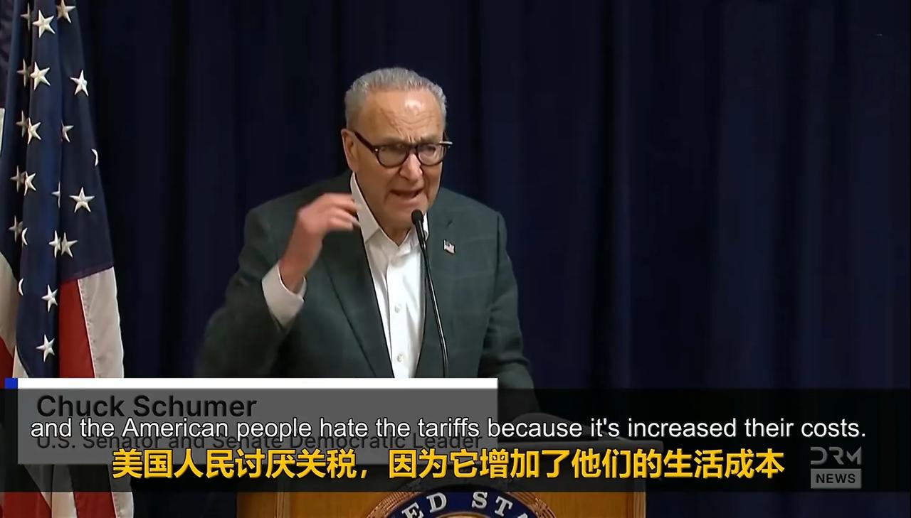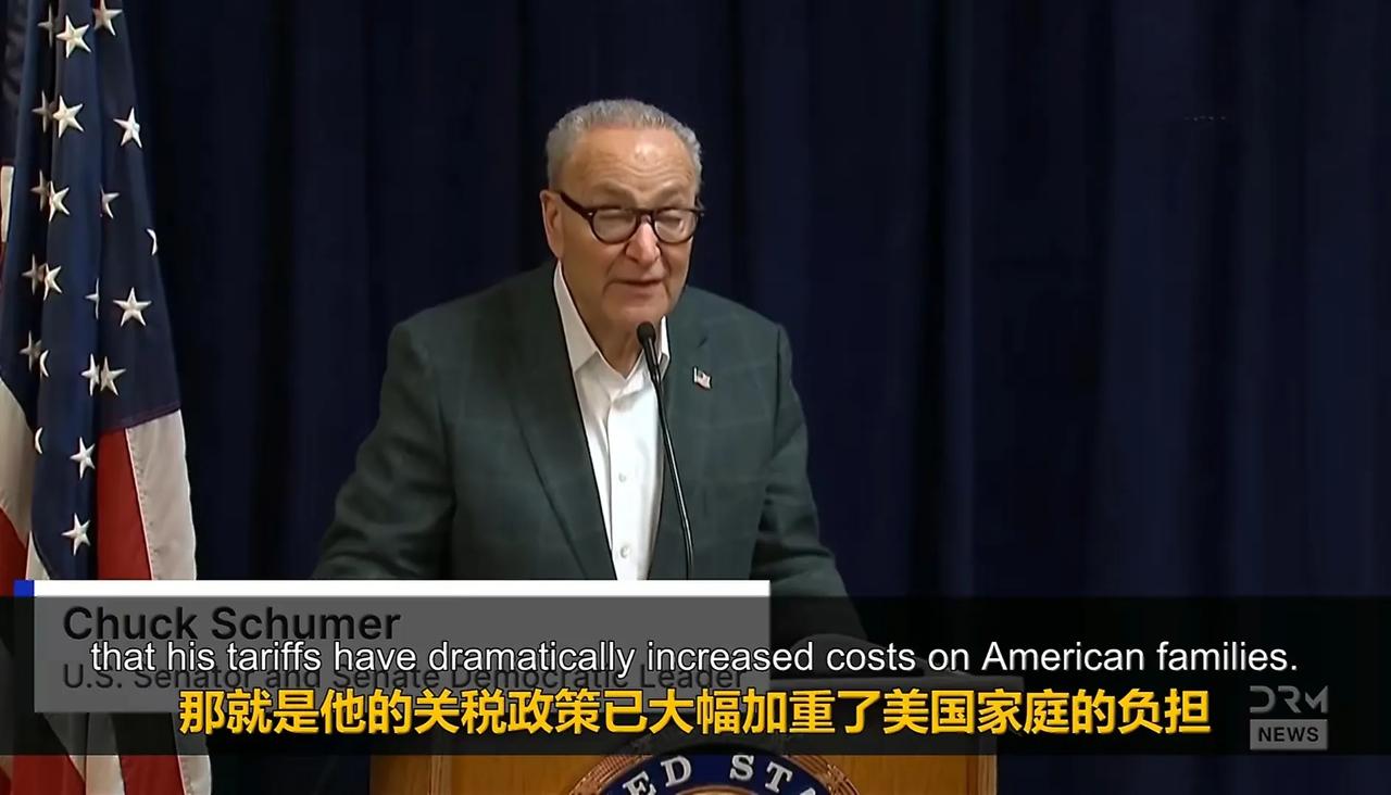 美国国会参议院少数党领袖查克·舒默日前痛批老特的关税政策大幅加重了美国家庭的负担