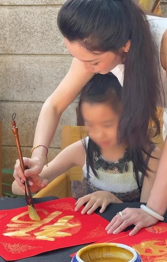 森林北带着10岁女儿写福字看着颇有才女的风范,要不是和汪峰在一起,大家就更关注她