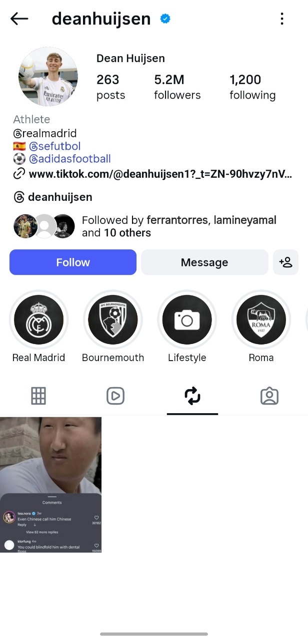 皇马球员赫伊森转发歧视中国人的帖子,随后有人表示他是误操作,然后就没有然后了🤫