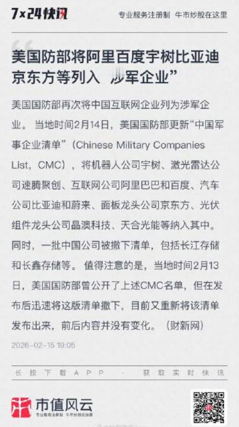 美国将宇树科技列入黑名单!美国国防部更新1260H中国军事企业清单,杭州宇树科技(Unitree)被正式列入其中。 懂行的人都知道,这背后不简单,美国国防部更新了1260H中国军事企业清单,杭州宇树科技被正式列进去了。 说白了,这就是美国给宇树贴了个“涉军”的标签,以后要对它搞限制,比如美国的投资不能进、政府采购大门也对它关上。 可能有人还不太了解宇树科技,其实这家公司可不简单,它2016年在杭州成立,一直盯着四足机器人和人形机器人做,算是国内这行的领头羊。 咱们平时刷到的那些会跑、会跳、还能翻跟头的机器狗,很多都是它家的产品,性价比高、性能又能打,在全球市场上都占着不小的份额。 有数据显示,2024年它家的四足机器人卖了2.37万台,全球近七成的市场都是它家的,人形机器人也交付了1500多台,在全球都排得上号。 而且它不只是卖整机,电机、减速器这些核心部件都是自己研发的,还和国内很多企业合作,搭起了完整的产业链,就连今年春晚,它家的机器人还上台表演武术,又帅又灵活,一下子圈了不少粉。 就是这么一家专心做民用机器人的公司,怎么就被美国盯上了呢?美国给出的理由挺牵强,说它的技术有“军民两用潜力”。 这话听着就不靠谱,现在很多科技产品都有这种潜力,美国自己的企业也不例外,怎么就偏偏盯着宇树下手? 其实明眼人都能看出来,美国不是真的担心“涉军”,而是怕宇树太强了,宇树做的具身智能,说白了就是让AI有了“身体”,能在真实世界里干活,这可是下一个科技风口。 美国一直想在这个领域占主导,看到中国有这样的企业冒头,还在全球市场抢了它的风头,就开始急了,找个借口就打压。 有人会担心,被美国列入黑名单,宇树会不会受很大影响?短期来看,肯定会有一些麻烦,比如海外市场拓展可能会受阻,美国那边的供应链也会受影响,但长远来看,未必是坏事。 咱们之前也见过,不管是华为还是光伏产业,美国越是打压,咱们的企业越能沉下心搞研发,反而越做越强。 宇树本身就有核心技术,国内的供应链也很成熟,不用依赖美国的部件,而且国内市场这么大,不管是科研机构还是企业,对它的产品需求都很大。 这次被打压,反而能倒逼它加快创新,把技术做得更硬,说不定还能带动国内整个机器人产业链一起升级。 宇树被拉黑,从来都不是一家企业的事,而是美国打压中国科技崛起的又一步棋,它想通过这种方式,切断中国科技企业的上升通道,保住自己的科技霸权,但它显然低估了中国企业的韧性,也看错了中国科技发展的大势。 说到底,真正的竞争力从来不是靠打压别人得来的,而是靠自己的硬实力,宇树既然能在全球市场站稳脚跟,就说明它有这个底气。 相信这次的限制,只会成为它成长的催化剂,以后咱们还能看到更多宇树的机器人,出现在更多场景里,让中国科技被全世界看到。