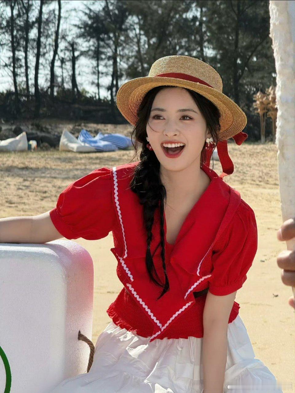 沈月携亲爱的客栈团宠正式亮相亲爱的客栈 沈月一身红衣白裙,宛如画中仙,团宠在侧更添灵动。
