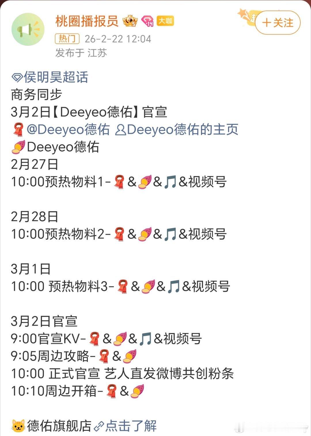 侯明昊新商务【Deeyeo德佑】即将官宣,每一部剧都是有效播!🔥小侯扛剧能力确实很强!🥝🔥《入青云》热播期云合集均1915w,《玉茗茶骨》天残平台🥭播集均1600w,《逍遥》热播期集均1821w,最可怕的是,这三部剧还都是在影视寒冬播的!