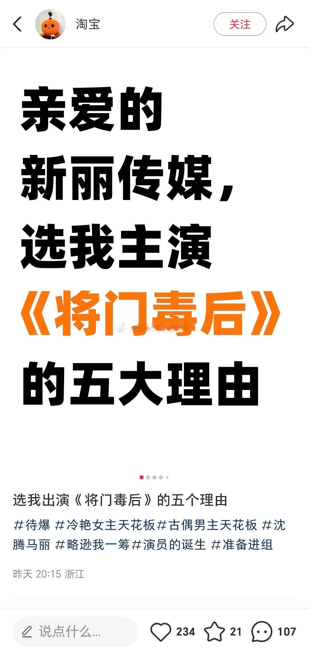 好好笑,我支持淘宝演将门毒后 😂😂