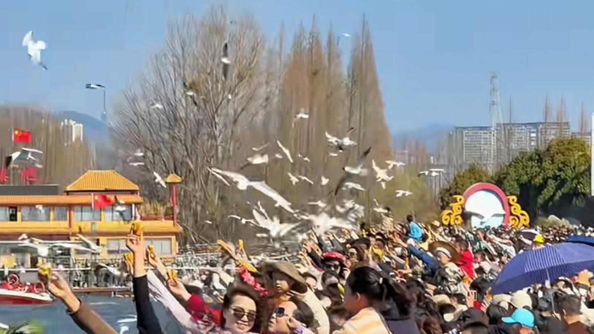 🔥春节海埂大坝彻底火了!天天人山人海,人比海鸥还多,两公里路要挪40分钟,拍照全靠挤。暖阳、滇池、西山、红嘴鸥齐上阵,全国游客扎堆打卡,现场热闹到沸腾。虽然人挤人,但挡不住大家追鸥热情,这就是昆明春节顶流!你去吗?评论区聊聊。海埂坝看海鸥 海埂大坝观鸥季 草海滇池
