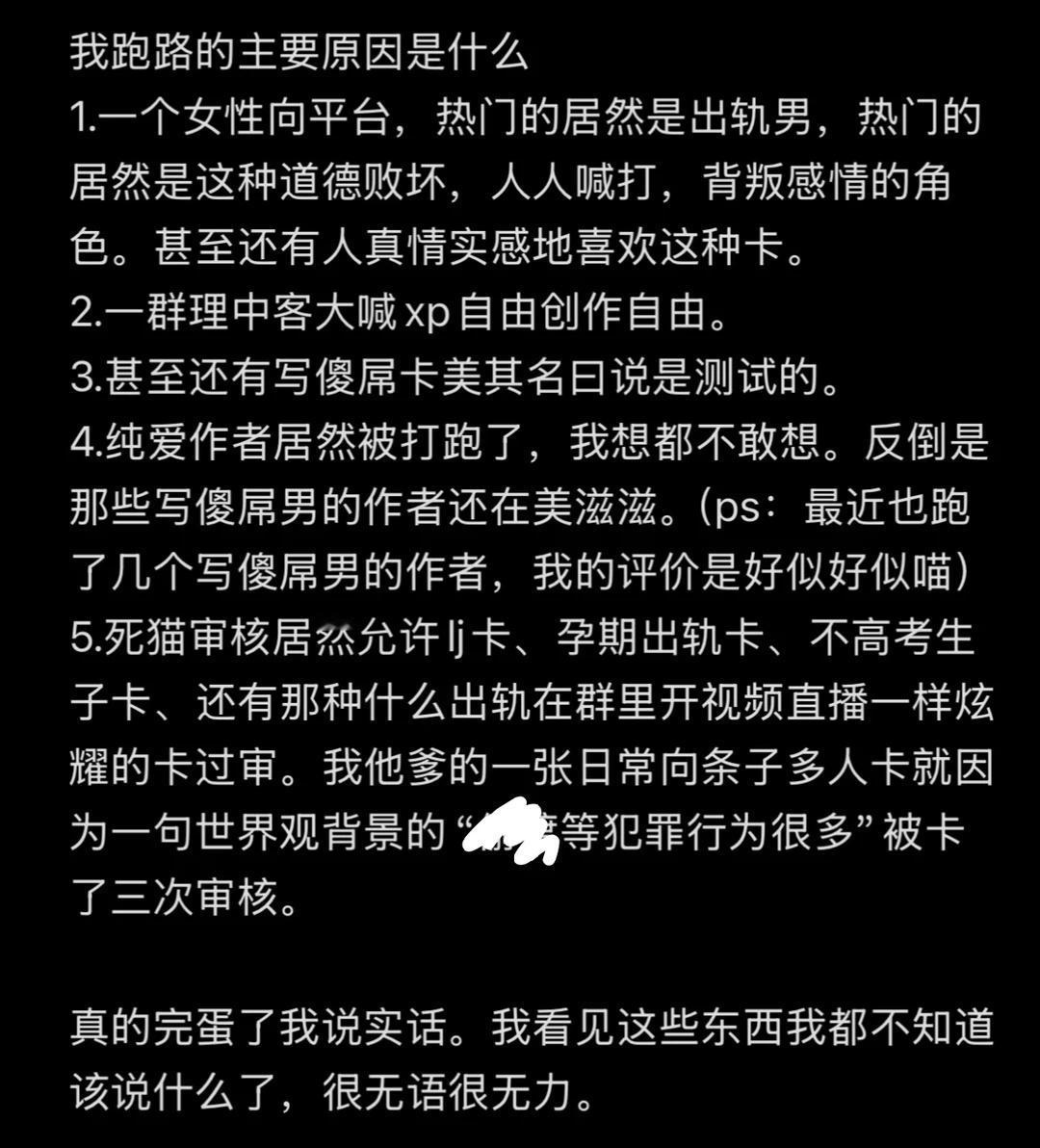 跑路 不删卡不清卡 再让我看见出轨男我就全年发财 出轨男你们似了 今晚把新卡视频发了就正式跑路 完全是日积月累才产生的这种情绪 神人理中客和出轨男还有出轨男作者99不88 mufy