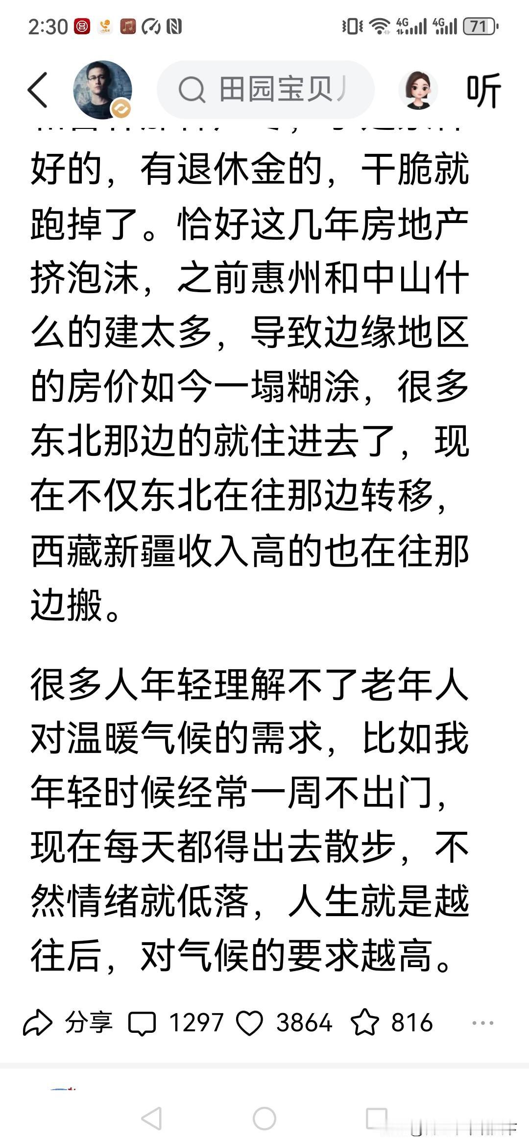 你说人是不是就是这样,年轻的时候,管它天寒地冻,还是温暖如春, 对于气候真的没有太多的要求和限制! 等到年纪大了,对于气候地域要求是越来越高! 特别想到温暖湿润的地方去养老! 我到海南和北海旅游的时候就特别感慨! 到处都是北方的人,特别是东北三省在那里养老生活的人! 打车遇到一位司机师傅,就是十年前就卖掉老家的房子到北海定居了! 他就说,相比辽宁的气候,北海简直就是天堂! 关键是我现在就住在所谓天堂杭州, 真心讲杭州气候是真不算天堂! 一年就两个季节,冬天和夏天! 冬天冷得要死,室内室外一个温度,遇到下雨,那种阴冷湿冷能钻进你的每个骨头缝了! 夏天热得地表能煎鸡蛋,已经是中国最新四大火炉了! 所以说,还是像九边说的,以后老了就到真正的南方城市去养老! 那可能才是真的宜居之地!