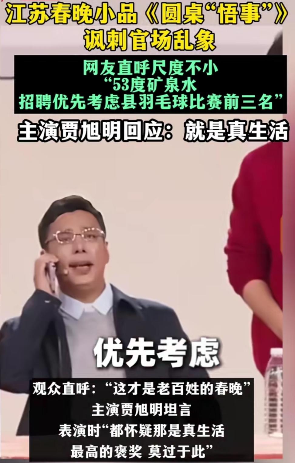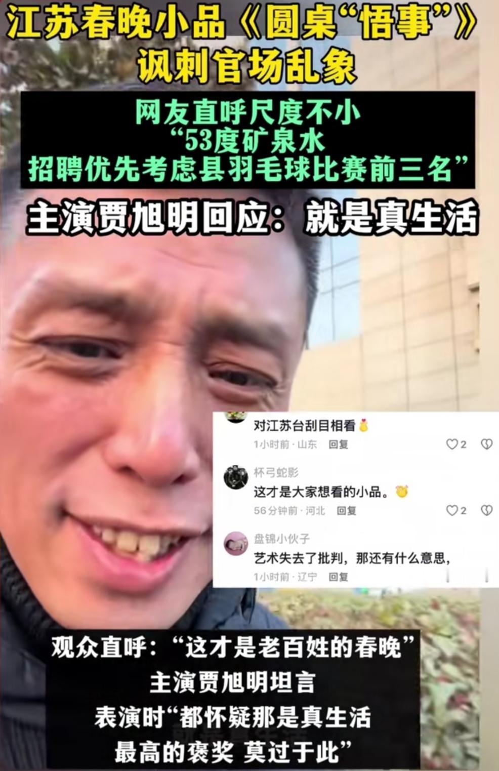 今年江苏春晚藏了个大招,小品《圆桌“悟事”》直接火出圈!本是守岁看的乐呵节目,没想到这作品把尺度拉满,直戳官场乱象,看完直呼过瘾,也成了网友节后热议的焦点。 谁能想到春晚舞台能看到这么敢说的作品,演员的演绎更是入木三分,连主演都直言演的时候怀疑这不是剧本,而是真生活,瞬间让作品的现实感拉满。 有人说这小品说出了心里话,有人感慨舞台的勇气,各种声音吵翻了天。其实好的作品从不怕直面现实,能让观众看完有思考、有共鸣,或许就是这档小品最珍贵的地方,至于好坏,自有大家评说。
