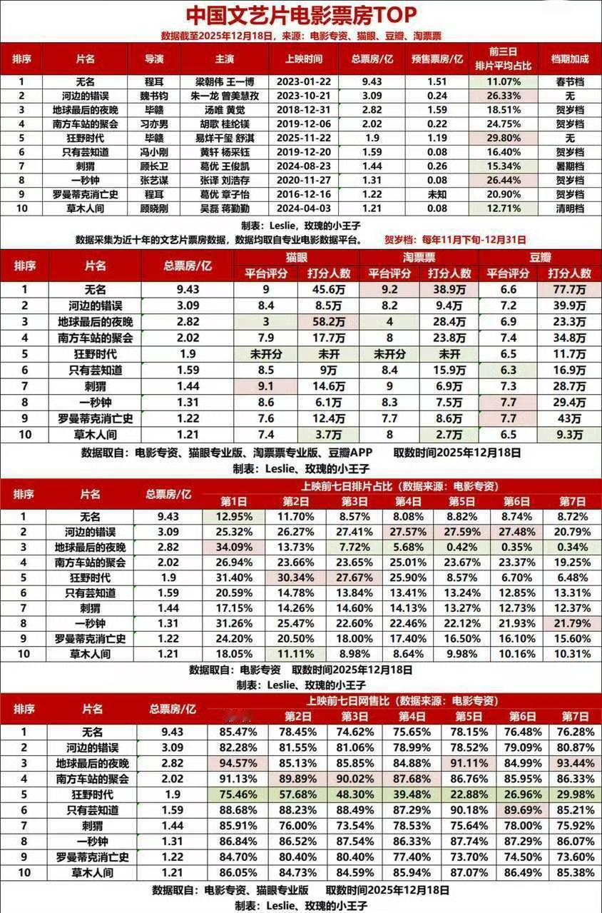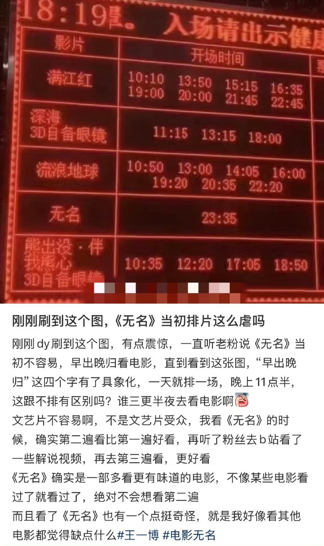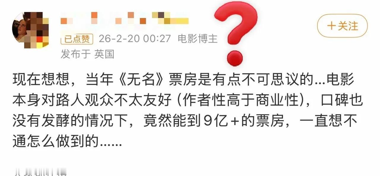 2026了,居然还有人在对着王一博2023年春节档的《无名》百般“意难平”…… “《无名》口碑没有发酵的?” “王一博电影运好?” “赶上好时候了?” 这种种言论,看得人无端发笑,也看得出来一位两位的酸气冲天,可就是不肯承认王一博的优秀和好演技。 说《无名》“赶上好时候”、“王一博电影运好”的,想问问是什么样的“好时候好运”? 是被浪球和满湖绿两巨头夹击的好时候?是首日排片12.9%之后个位数几乎无黄金场早出晚归绝食场的好时候?是首场开场不到十分涌入几万一星的好时候?是断章取义移花接木蓝v矩阵下场直逼一个年轻人退圈架势的漫天黑水的好运气? 这样的“好时候”,给你蒸煮你蒸煮要不要?这样的“好运”你们能不能在长期个位数排片的情况下多次逆跌跑赢预测拿下文艺片票房天花板29天破9亿?! 《无名》中的叶先生,被王一博的演绎赋予了程耳导演都从未想到过的动人心魄的魅力,所以,才有了现场不断的“为爱”飞页,而王一博粉丝摩托姐姐优秀的不遗余力从不放弃的出圈宣传,才与王一博的优秀演绎共同造就了《无名》后续口碑发酵完成逆袭。 装什么“想不明白”啊?合着王一博金鸡华表影帝双提就是“大环境好”?承认王一博优秀有这么难吗? 王一博