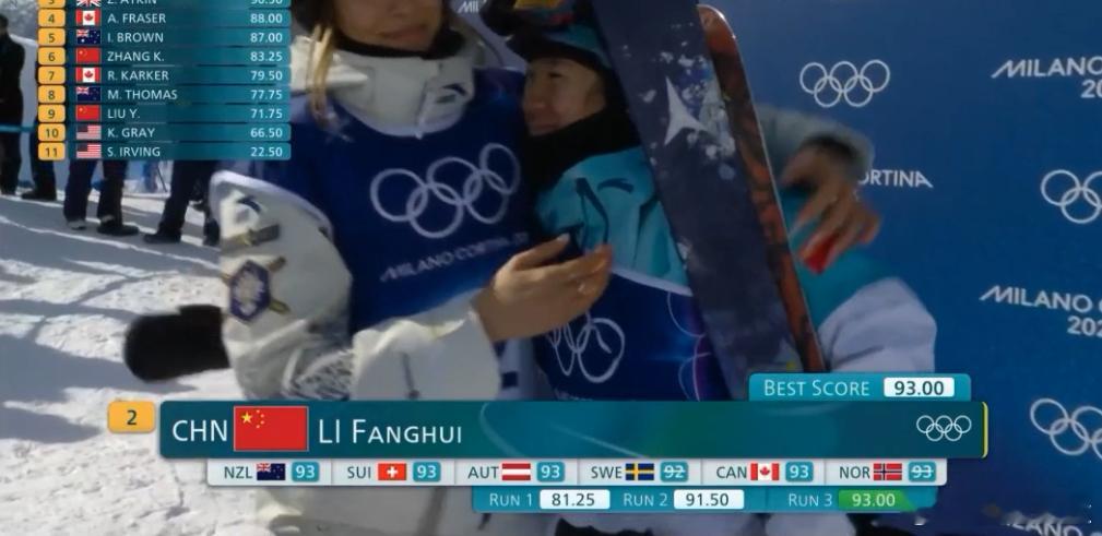 李芳慧93.00分获得亚军,个人首次赢得奥运奖牌。中国队包揽冠亚军!