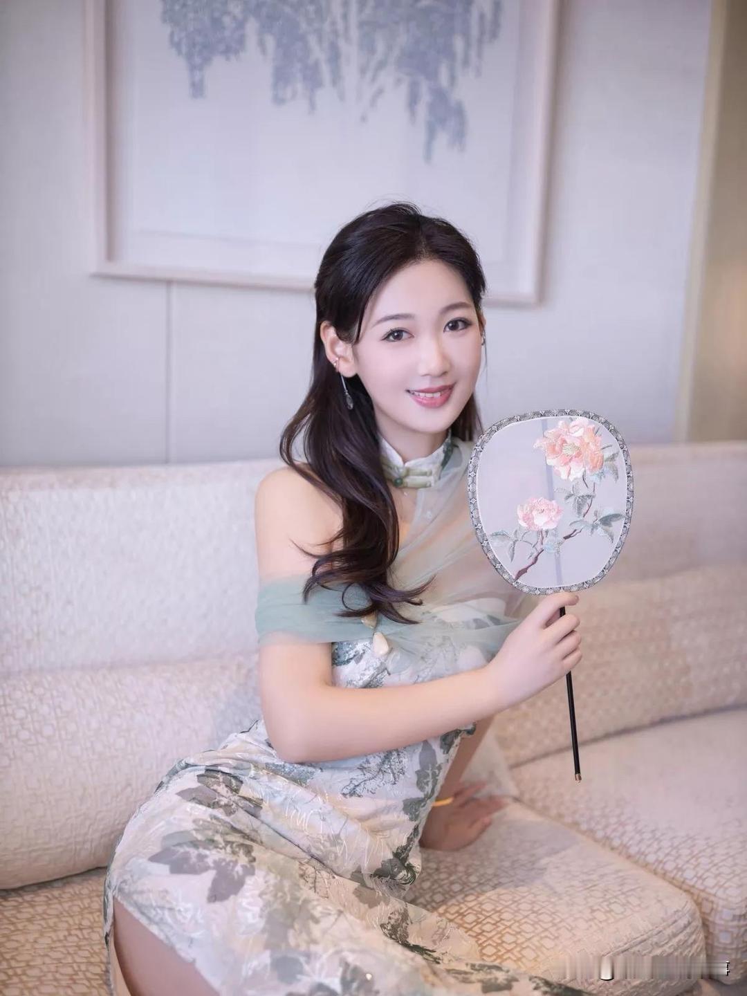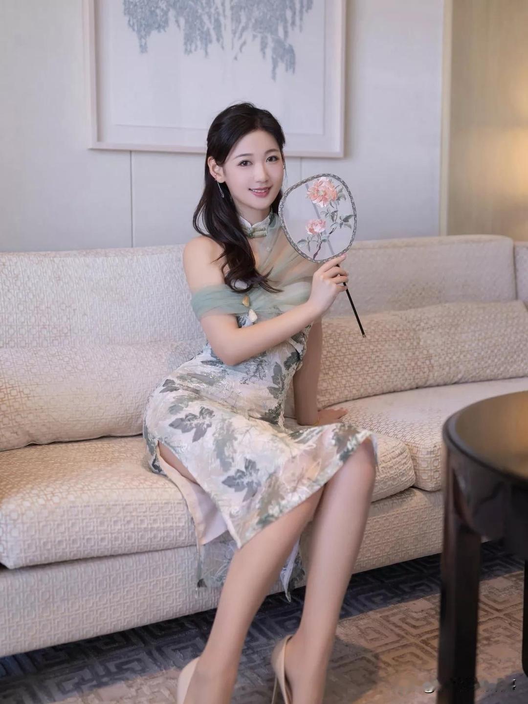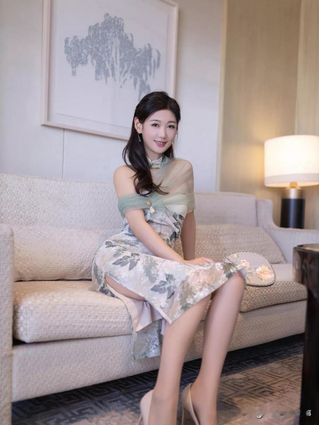 "优雅坐姿,轻拢慢捻,古典韵味在指尖流转。"长腿女神唐安琪 旗袍小妈 甜风旗袍图
